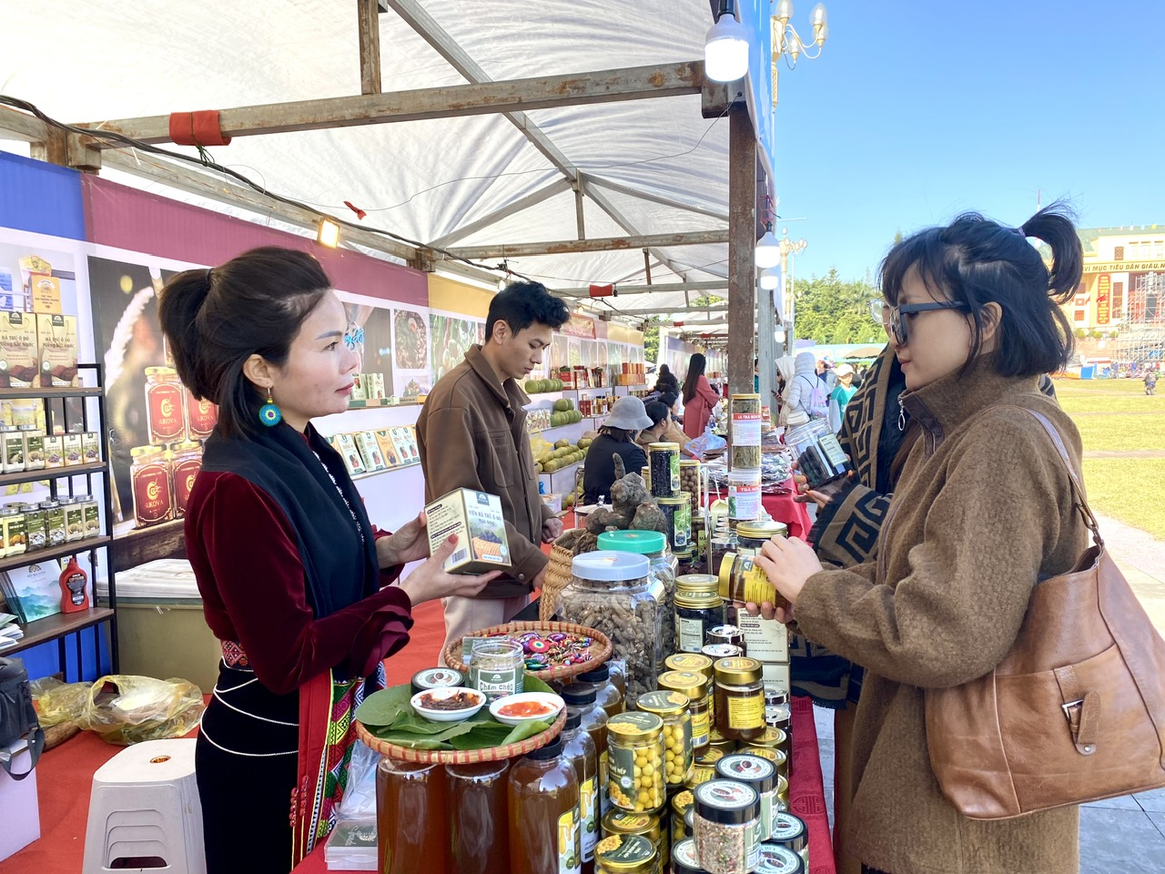 Các sản phẩm OCOP tiêu biểu được giới thiệu bao gồm: mắc ca, miến dong, cao xương ngựa bạch, gạo séng cù, chè, mật ong và đông trùng hạ thảo. Bên cạnh đó, nhiều nông sản tiêu biểu khác như khoai sâm và dược liệu các loại cũng được trưng bày.