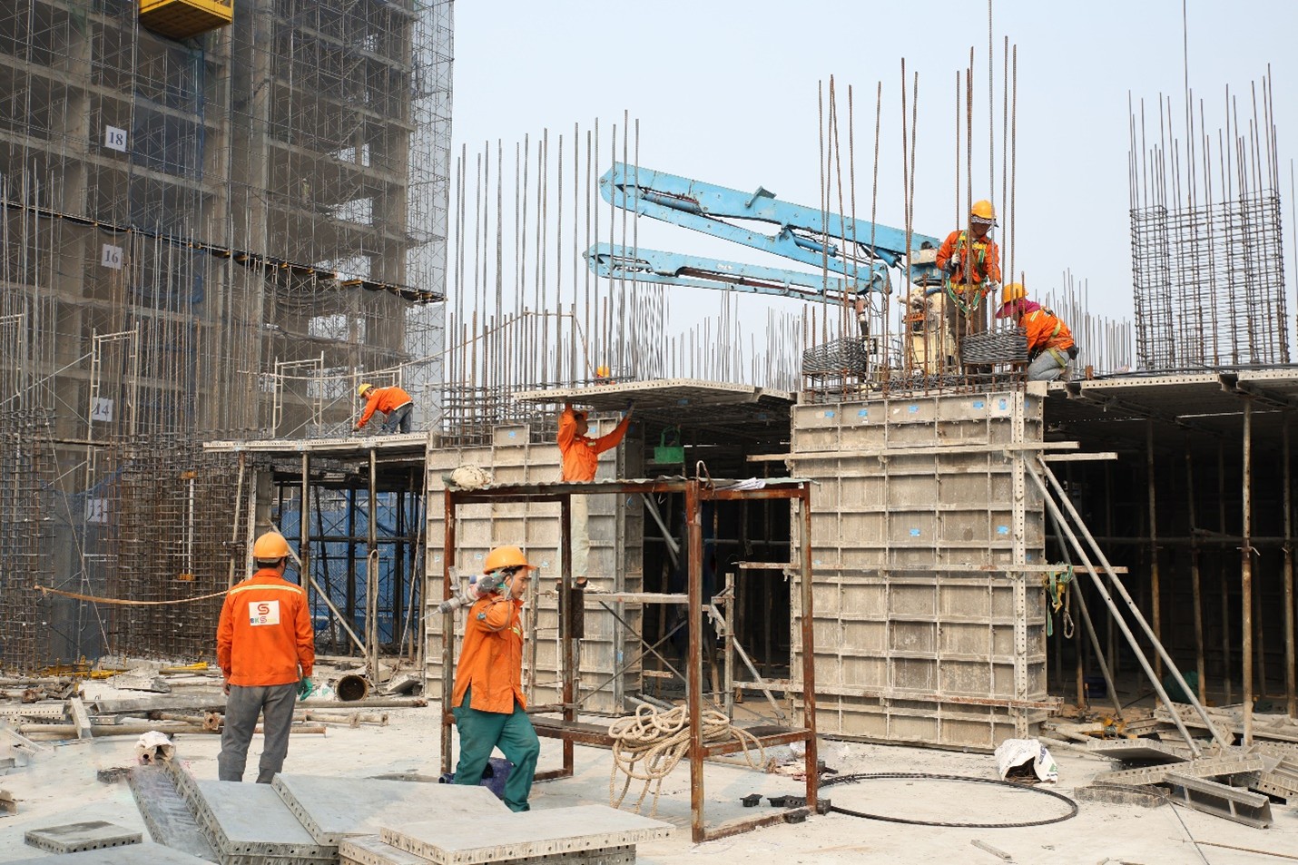 Không khí khẩn trương, nhộn nhịp trên công trường.