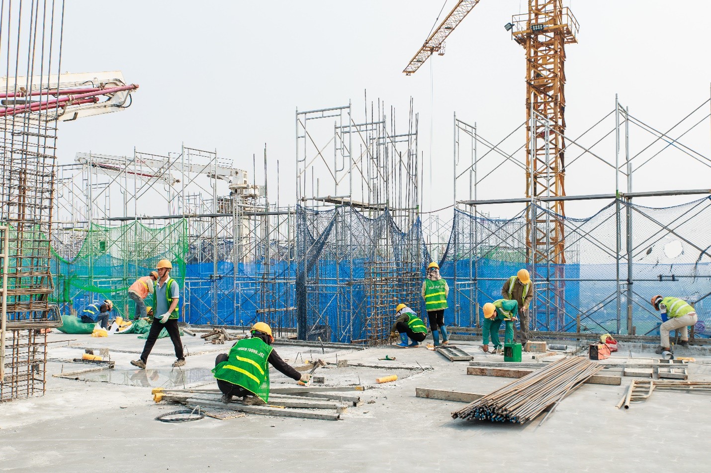 Hàng trăm công nhân thi công khẩn trương để kịp tiến độ
