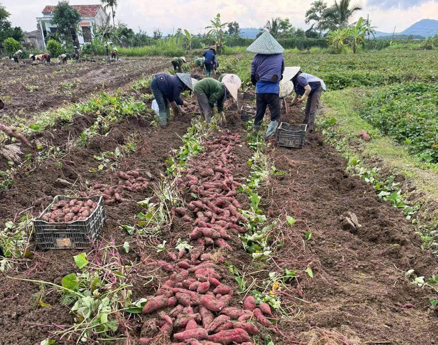 Trong đó, diện tích gieo sạ lúa đạt 550 ha, năng suất bình quân 8,5 tấn/ha/vụ, sản lượng đạt 4.675 tấn, doanh thu khoảng 46,75 tỷ đồng. Bên cạnh cây lúa, HTX chủ động chuyển đổi 140 ha sang trồng khoai lang Nhật, năng suất bình quân đạt 28–30 tấn/ha, mang lại lợi nhuận từ 100–115 triệu đồng/ha/vụ. Riêng năm 2024, giá khoai lang ổn định ở mức cao, đem lại giá trị kinh tế vượt trội cho người dân.