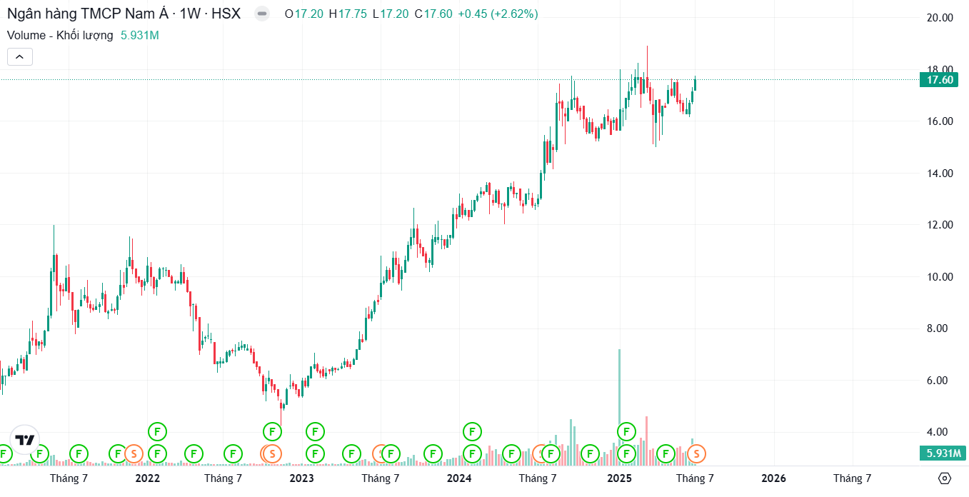 Giá cổ phiếu NAB có hiệu suất tăng trưởng tốt từ đầu năm 2025.