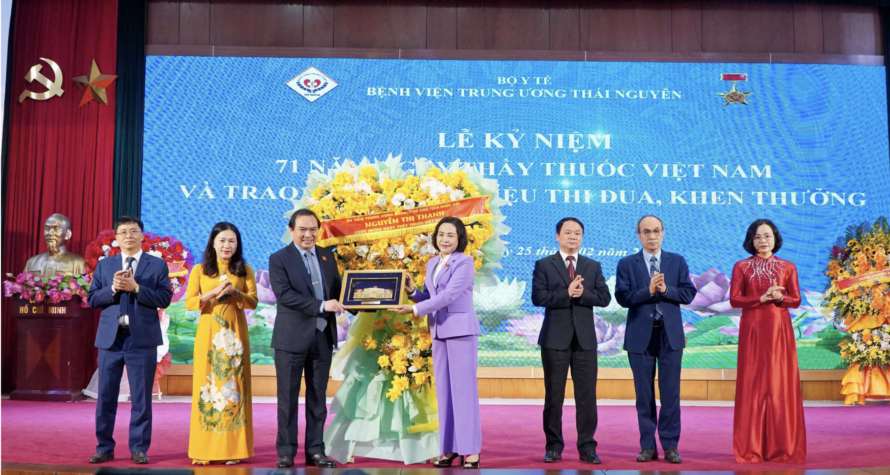 Tại Lễ kỷ niệm 71 năm Ngày Thầy thuốc Việt Nam (27/2/1955 - 27/2/2026), Phó Chủ tịch Quốc hội Nguyễn Thị Thanh đã tặng hoa, chúc mừng và ghi nhận những đóng góp của Bệnh viện trong sự nghiệp chăm sóc, bảo vệ và nâng cao sức khỏe nhân dân