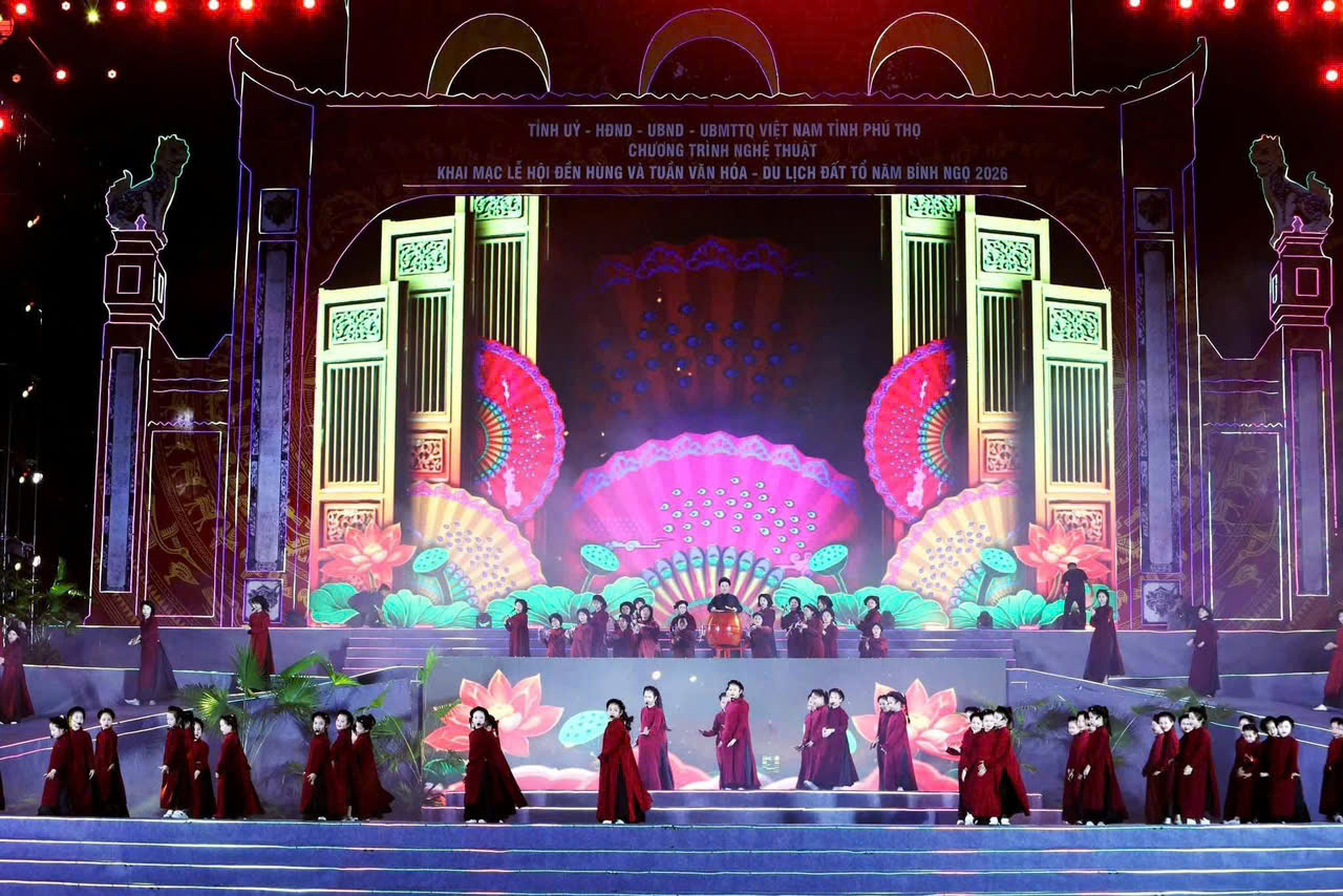 Đêm khai mạc Lễ hội Đền Hùng và Tuần Văn hóa - du lịch Đất Tổ năm 2026 gồm 3 chương được dàn dựng công phu, xuyên suốt từ cội nguồn đến hiện tại và tương lai.