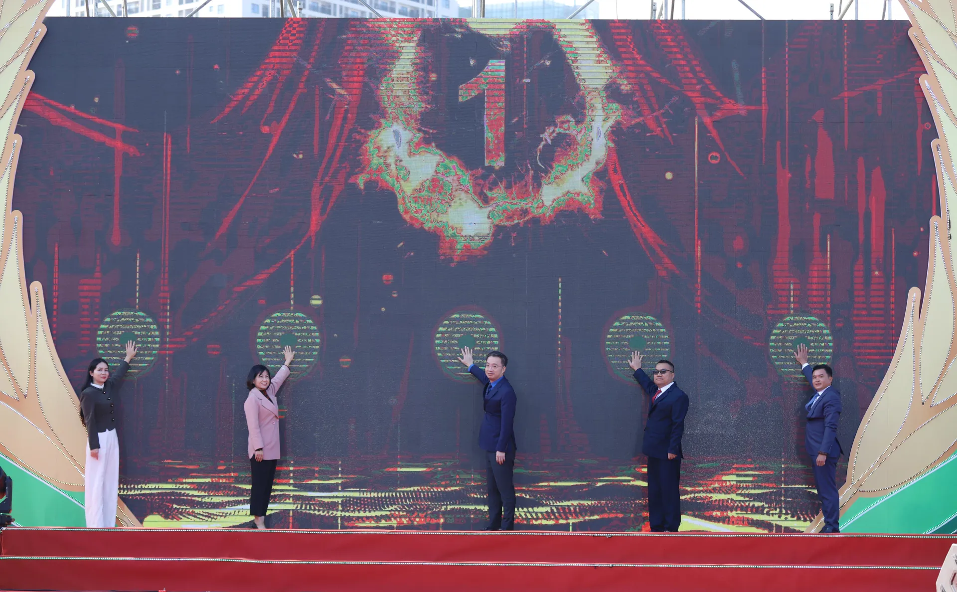 Các đại biểu bấm nút khai mạc triển lãm. Ảnh: Lâm Hải