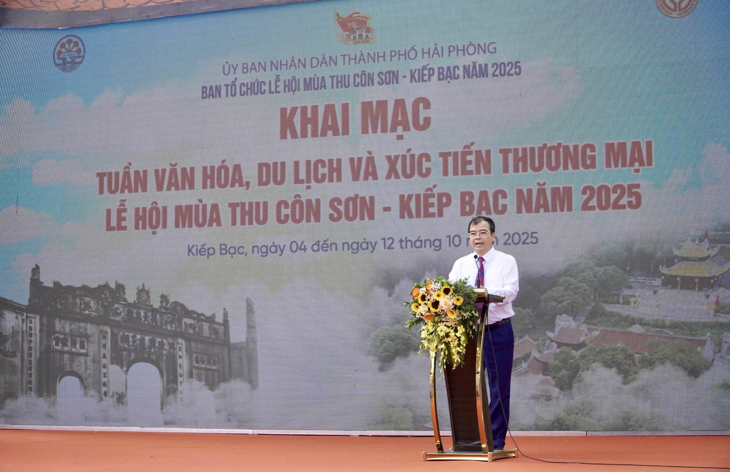 Phát biểu khai mạc, ông Nguyễn Minh Hùng, Phó Chủ tịch UBND TP Hải Phòng, Phó Trưởng Ban Thường trực Ban Tổ chức Lễ hội mùa thu Côn Sơn - Kiếp Bạc năm 2025 cho biết, Lễ hội mùa thu Côn Sơn - Kiếp Bạc hàng năm là dịp để nhân dân tưởng nhớ, tri ân công lao to lớn của các bậc tiền nhân; đồng thời là cơ hội quảng bá hình ảnh quê hương Hải Phòng - vùng đất giàu truyền thống văn hóa, lịch sử và tiềm năng phát triển du lịch, thương mại.