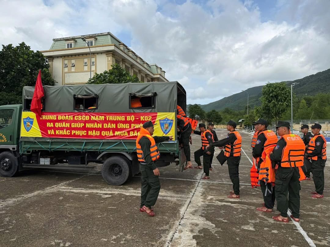 Trung đoàn Cảnh sát cơ động Nam Trung Bộ xuất quân hỗ trợ chính quyền và nhân dân ứng phó với cơn bão số 13. Ảnh: Công an TP.HCM
