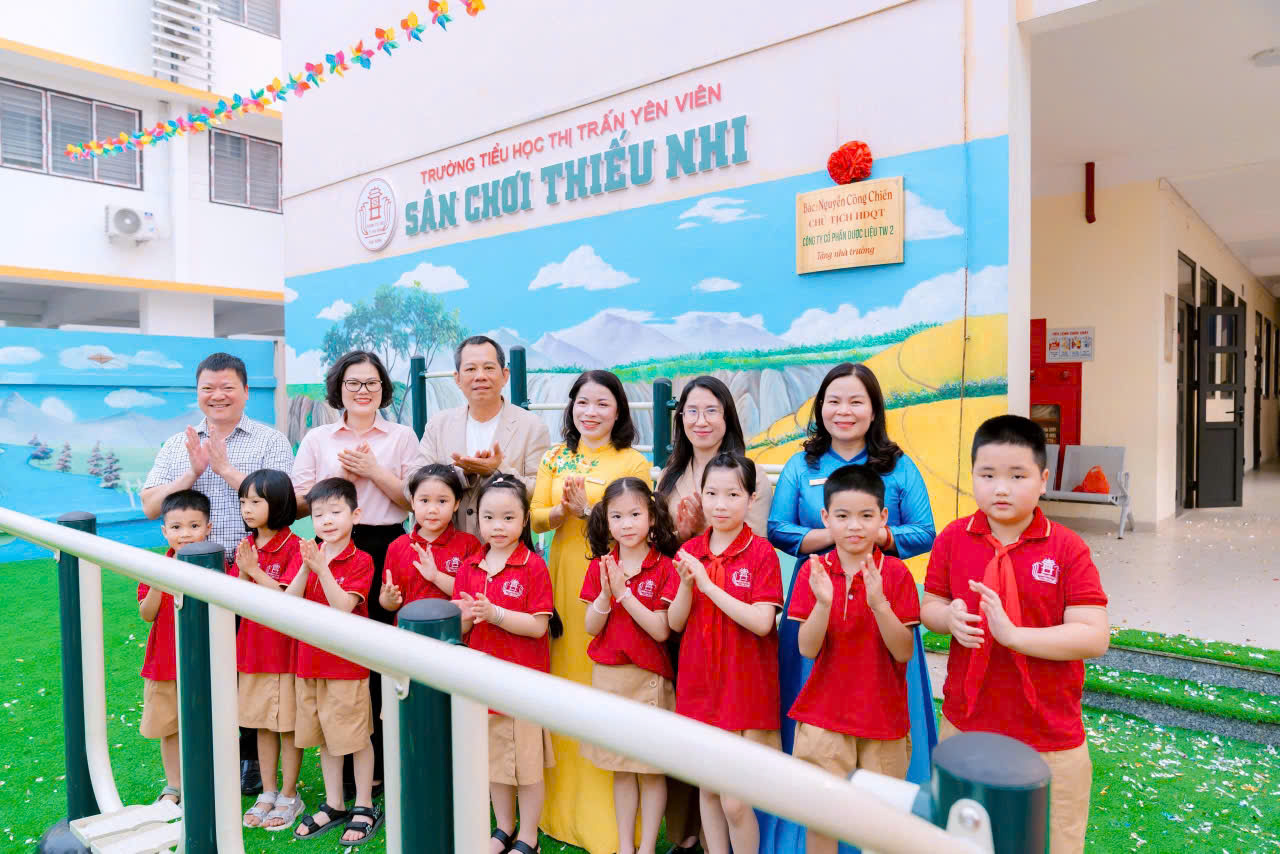 Công trình được xây dựng từ sự quan tâm, sẻ chia và tấm lòng nhân ái của ông Nguyễn Công Chiến - Chủ tịch Hội đồng quản trị Công ty Cổ phần Dược liệu Trung ương 2. Ông Nguyễn Công Chiến đã dành tặng nhà trường 210 triệu đồng, trong đó 160 triệu đồng để thực hiện sân chơi thiếu nhi và 50 triệu đồng dành cho Quỹ khuyến học khuyến tài của nhà trường. Không chỉ mang giá trị vật chất, sân chơi còn thể hiện sự quan tâm, đồng hành của doanh nghiệp đối với sự phát triển toàn diện của thế hệ học sinh.