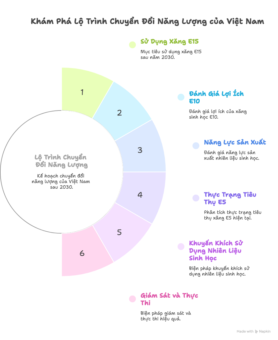 Từ năm 2030, kế hoạch sẽ tiếp tục cho phép sử dụng xăng E15 (hàm lượng ethanol từ 14-15%) hoặc các loại xăng sinh học với tỷ lệ phối trộn khác do Bộ trưởng Bộ Công Thương quy định. Điều này cho thấy rõ ràng cam kết của Việt Nam trong việc chuyển đổi sang nguồn năng lượng sạch hơn.