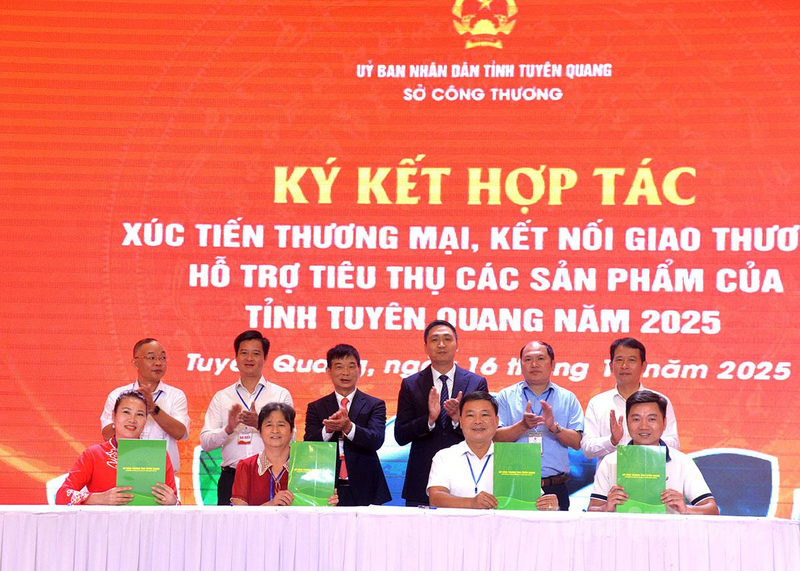 Ký kết hợp tác thúc đẩy tiêu thụ sản phẩm (Ảnh: Báo Tuyên Quang)