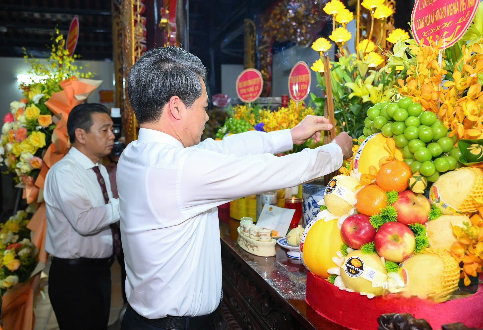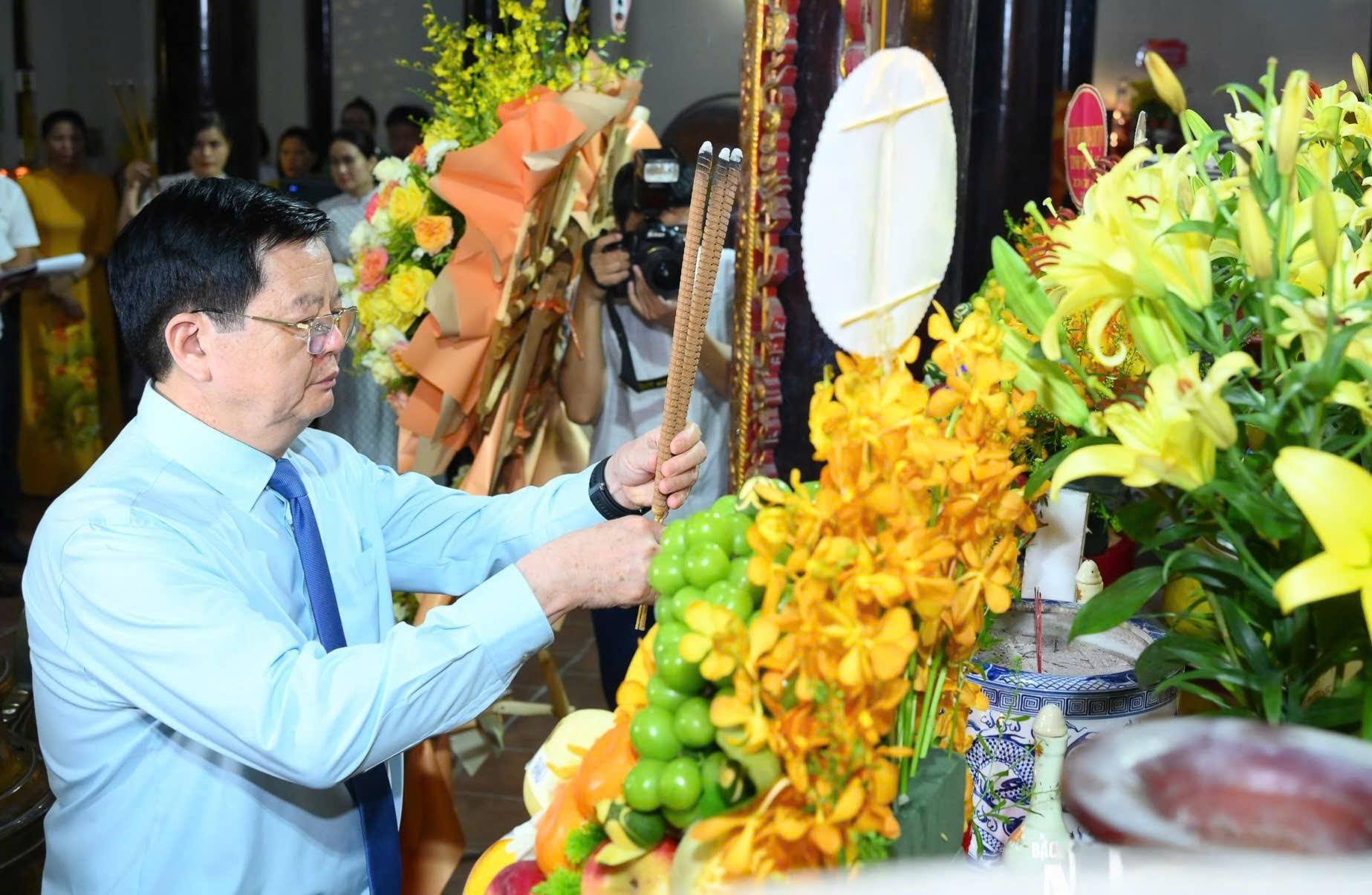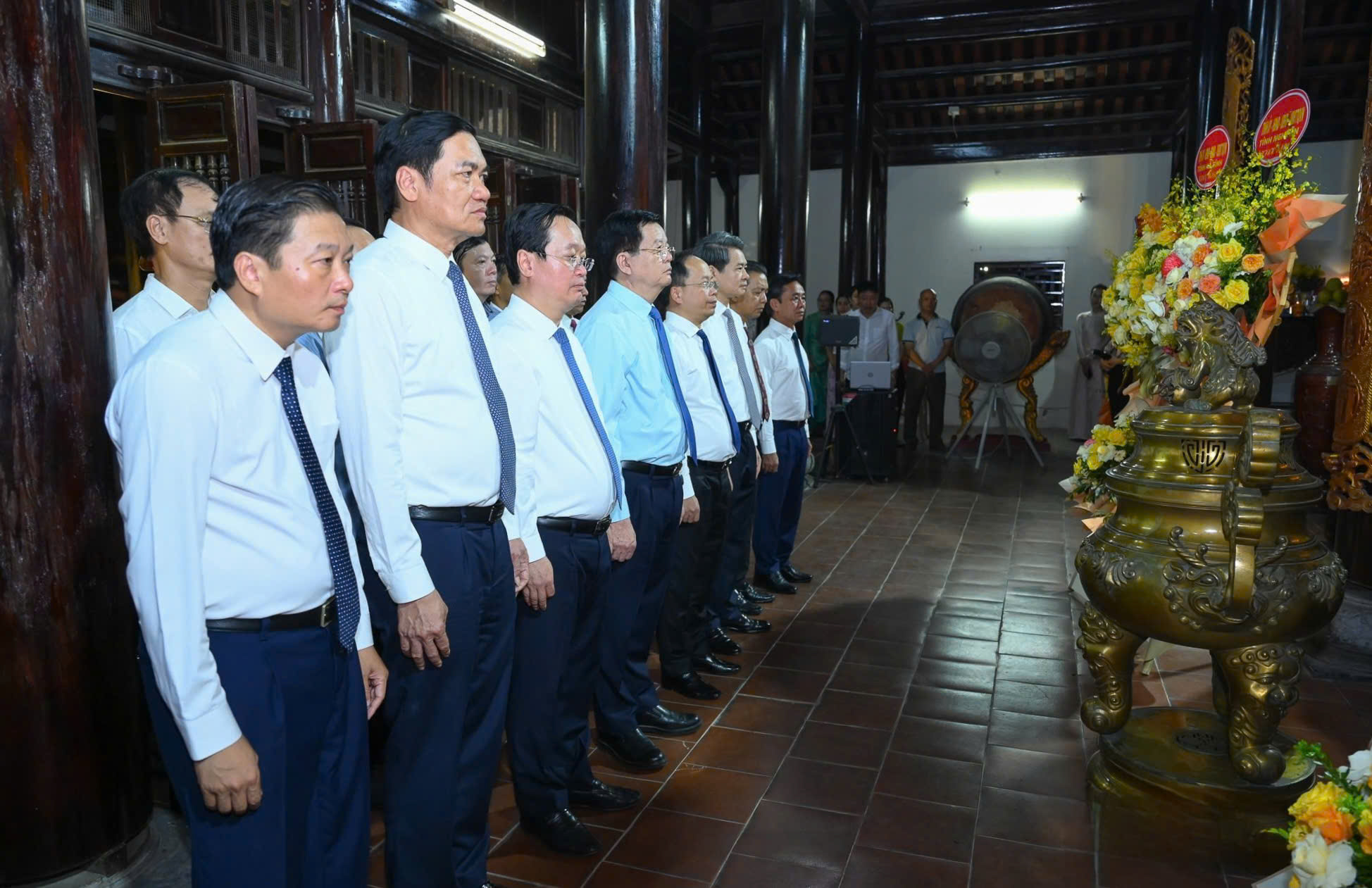 Các đồng chí lãnh đạo, nguyên lãnh đạo Đảng, Nhà nước, Bộ, ngành, tỉnh Hà Tĩnh, Nghệ An dâng hoa, dâng hương tưởng niệm các Anh hùng liệt sĩ đã hy sinh trong các cuộc kháng chiến vĩ đại của dân tộc.