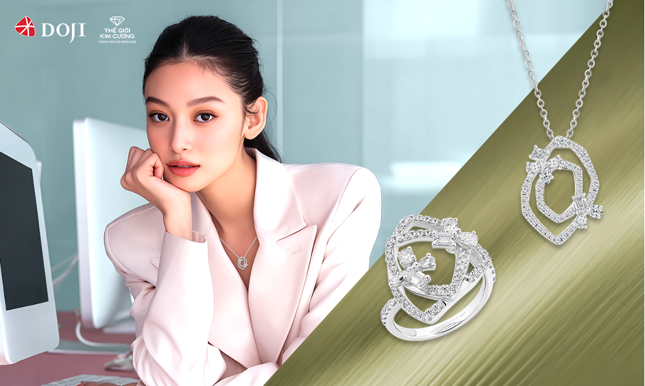 Đồng hành cùng tinh thần ấy, TrenD by DOJI mang đến hệ thiết kế phong phú, đáp ứng đa phong cách và đa hoàn cảnh. Ở môi trường công sở, hình ảnh Lady Boss được khắc họa qua những giác cắt kim cương unround như vuông, hạt thóc hay giọt nước, tạo nên tổng thể mạnh mẽ nhưng vẫn tinh tế. Một chiếc nhẫn tối giản hay đôi hoa tai sắc sảo có thể hoàn thiện diện mạo chuyên nghiệp, giúp người phụ nữ giữ vững thần thái tự tin trong các cuộc họp hay sự kiện quan trọng. Sự tiết chế trong thiết kế chính là điểm nhấn, tạo nên vẻ sang trọng không cần phô trương.