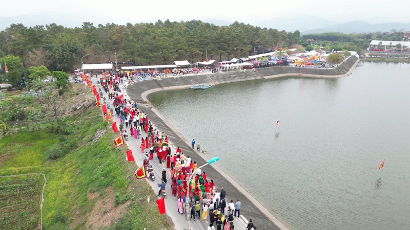 Cùng với đó là hoạt động giao lưu văn nghệ: Hát chèo, hát văn và các màn hát giao duyên trên thuyền rồng giữa hồ nước trong xanh, tạo nên một không gian văn hóa đặc sắc.