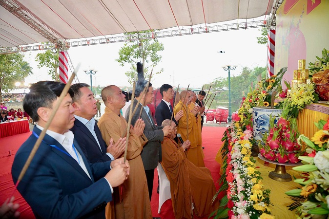 Bên cạnh đó, nghi thức rước nước đầu nguồn về dâng cúng Phật cũng được thực hiện đầy thành kính, thu hút sự quan tâm của hàng nghìn khách hành hương.