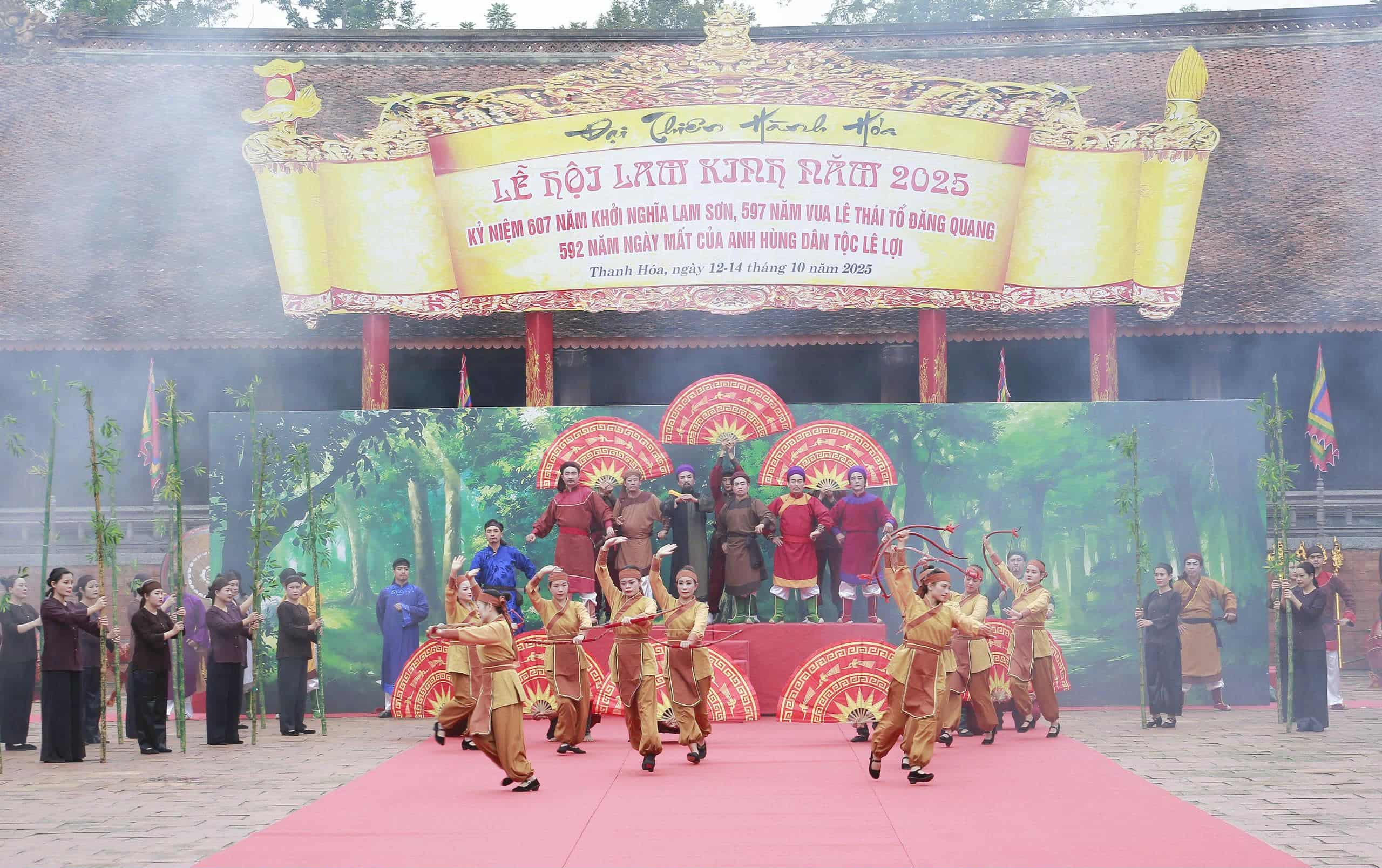 (TH&PL) - Sáng 13/10, tại Khu Di tích Quốc gia đặc biệt Lam Kinh, tỉnh Thanh Hoá long trọng tổ chức Lễ hội Lam Kinh năm 2025, kỷ niệm 607 năm khởi nghĩa Lam Sơn, 597 năm vua Lê Thái Tổ đăng quang, 592 năm ngày mất Anh hùng dân tộc Lê Lợi, với chương trình nghệ thuật đặc sắc “Hào khí Lam Sơn - Tỏa sáng trường tồn”.
