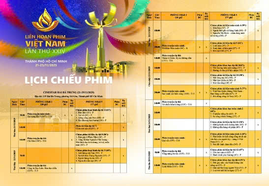 Ban tổ chức Liên hoan phim Việt Nam lần thứ XXIV phát vé xem phim miễn phí cho khán giả TP Hồ Chí Minh từ ngày 15/11 tại ba cụm rạp: Galaxy Park Mall (Parc Mall, đường Tạ Quang Bửu), CGV Hùng Vương Plaza (đường Hồng Bàng) và Cinestar Hai Bà Trưng. Khán giả nhận vé trực tiếp tại quầy, mỗi người được nhận tối đa 4 vé/đợt, trong đó không quá 2 vé cho mỗi phim. Lịch chiếu chi tiết được niêm yết tại từng rạp để người xem thuận tiện lựa chọn.