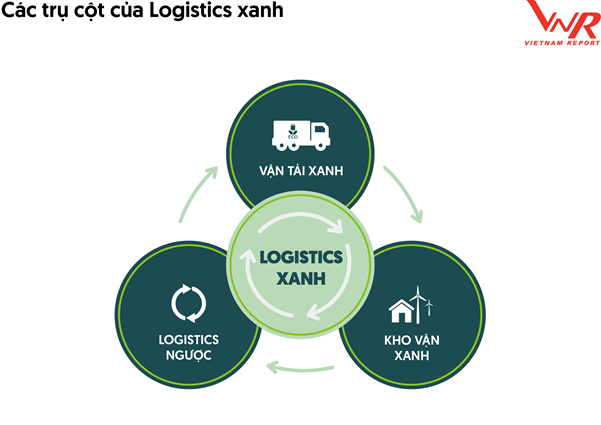 Logistics ngược: Trụ cột này hoàn chỉnh vòng tròn kinh tế tuần hoàn, tạo ra dòng chảy ngược có kiểm soát, giúp kéo dài vòng đời sản phẩm và giảm đáng kể lượng chất thải. Logistics ngược bao gồm thu hồi bao bì, sửa chữa – tái sản xuất, và tái chế vật liệu.