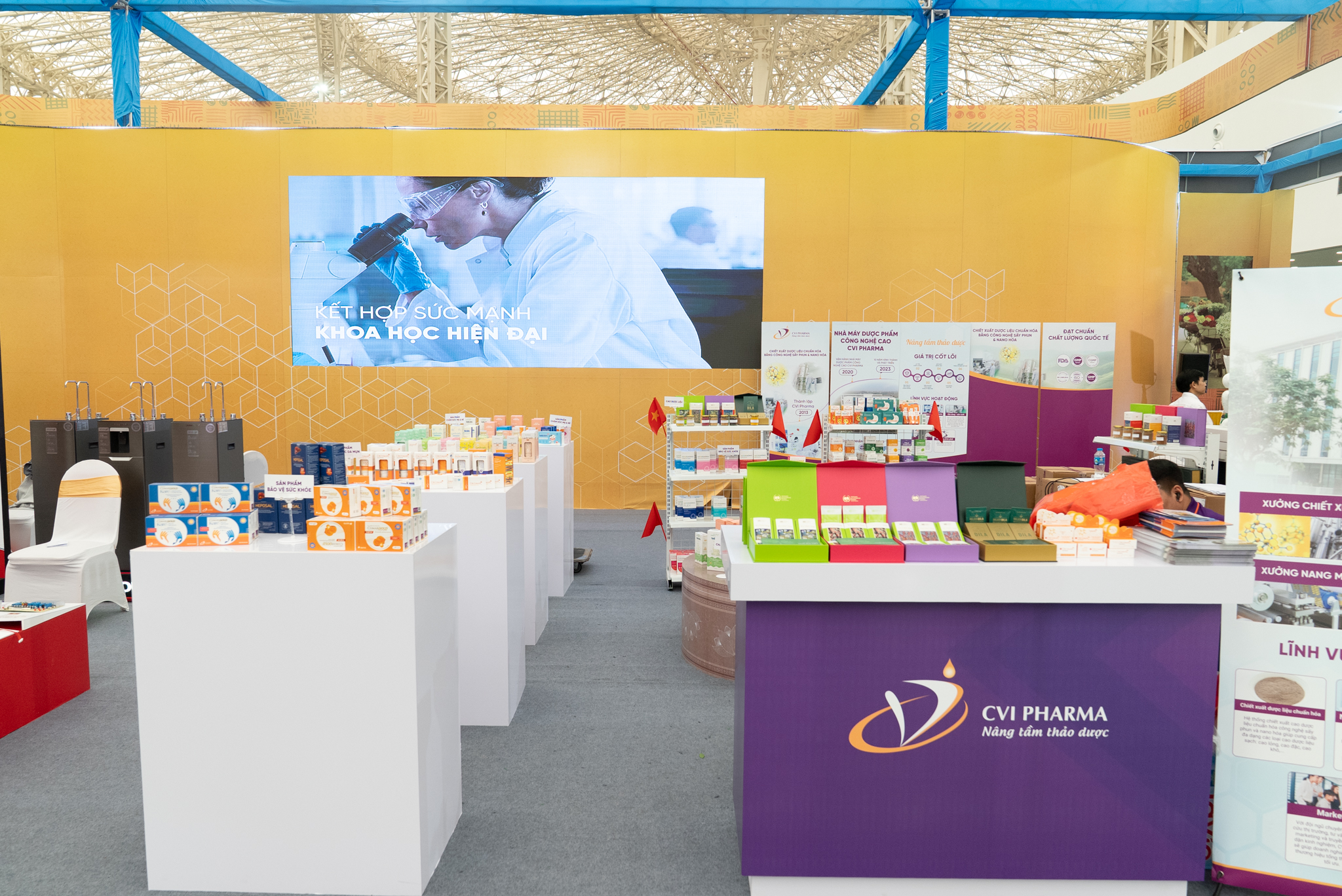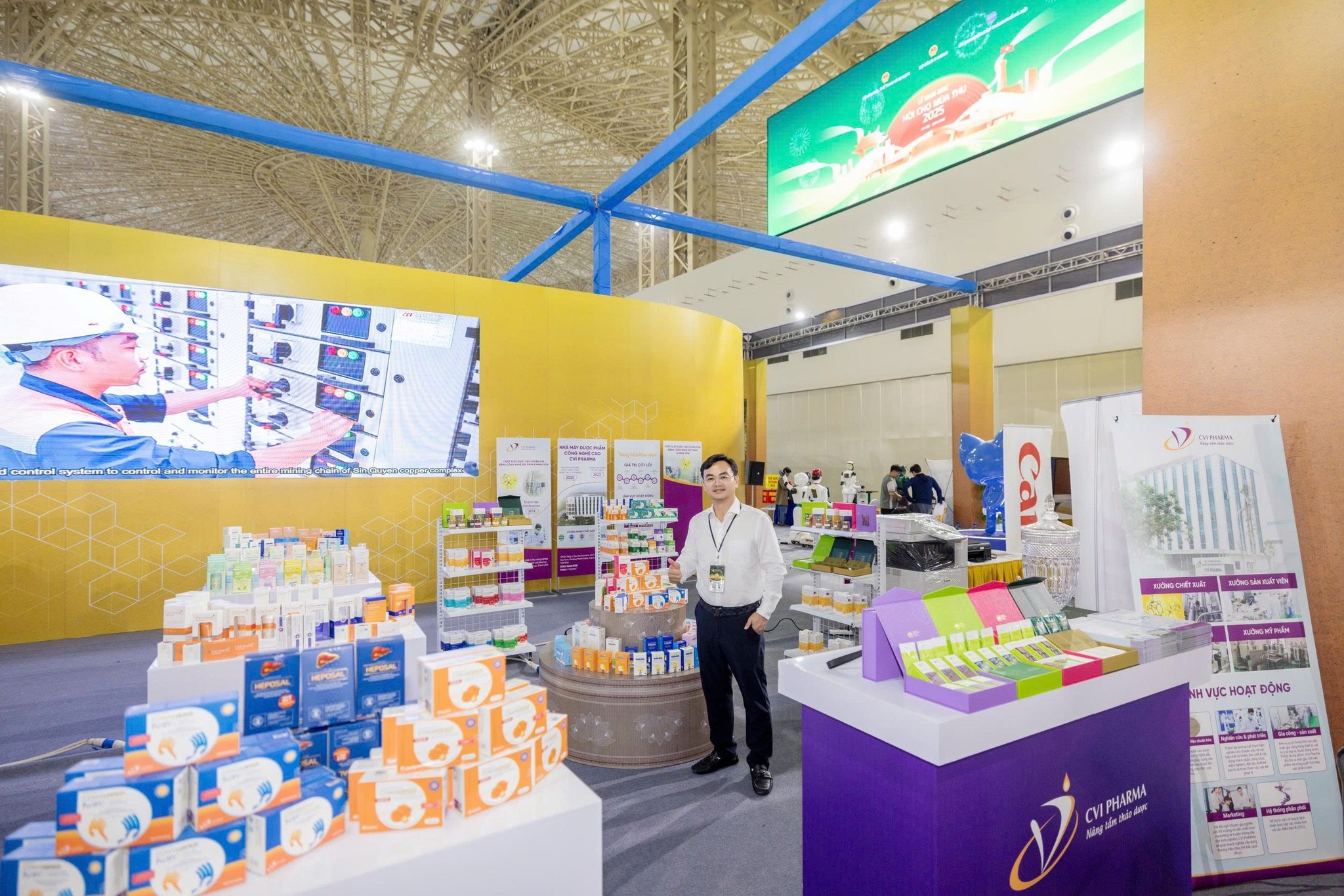 Chủ tịch HĐQT Công ty CP Dược mỹ phẩm CVI có mặt tại gian hàng để chỉ đạo hoạt động