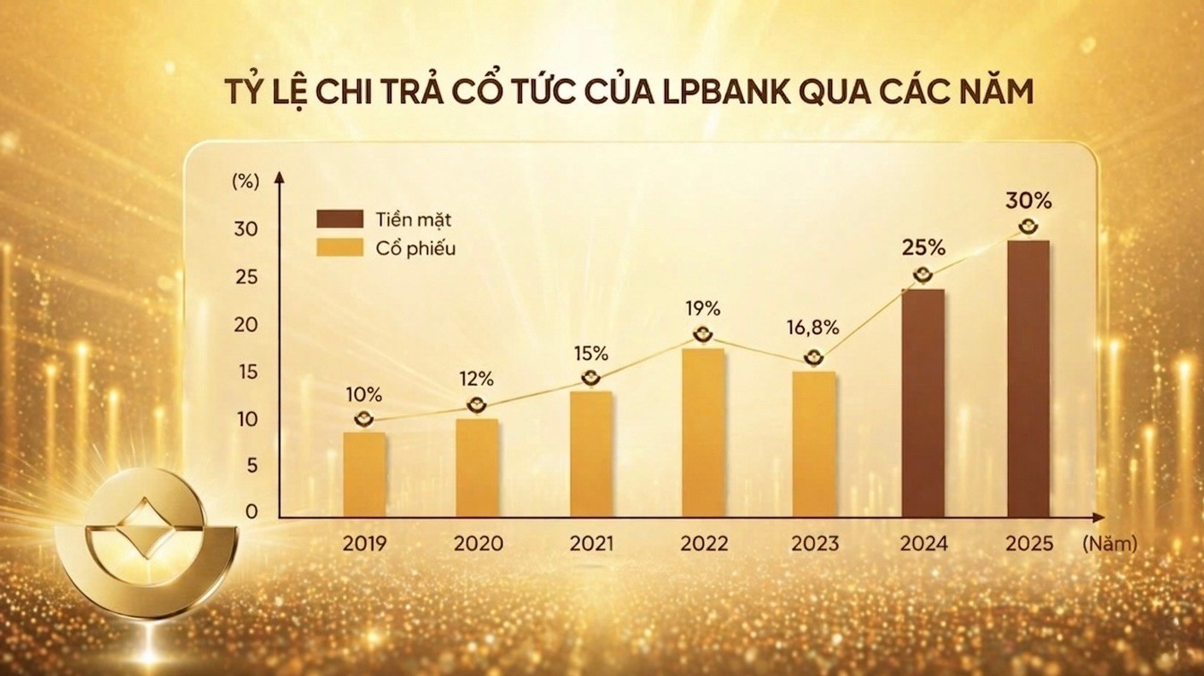 Song hành với chiến lược vươn tầm, LPBank tiếp tục chứng minh nền tảng tài chính vững vàng bằng kế hoạch phân phối lợi nhuận năm 2025 đầy ấn tượng. Với lợi nhuận trước thuế đạt hơn 14.268 tỷ đồng, ngân hàng dự kiến trình cổ đông phương án chi trả cổ tức tiền mặt với tổng tỷ lệ lên tới 30%. Đây là mức chi trả cao trên thị trường, thể hiện cam kết mạnh mẽ của HĐQT trong việc gia tăng lợi ích tối đa và chia sẻ thành quả kinh doanh với các cổ đông đã đồng hành cùng ngân hàng.