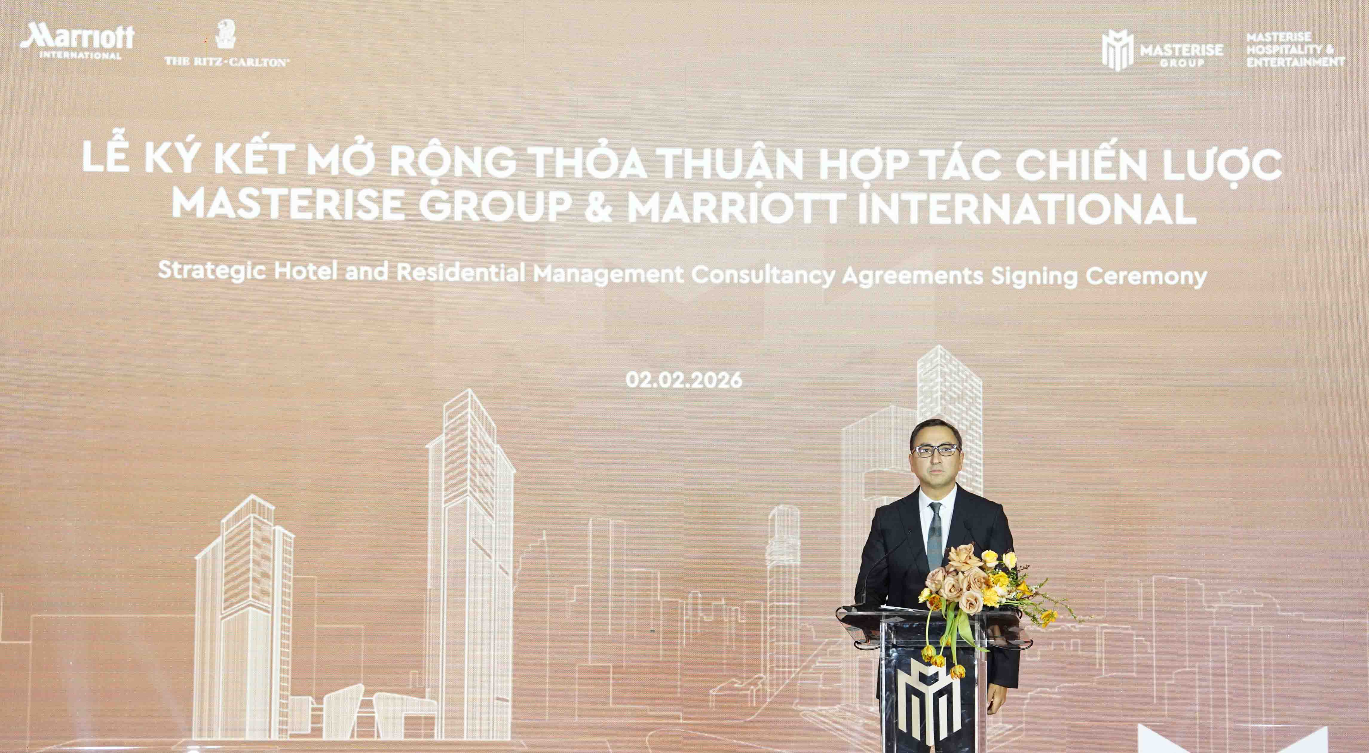 Cũng tại lễ ký kết mở rộng hợp tác, ông Gautam Bhandari, Marriott International chia sẻ: “Mối quan hệ hợp tác giữa Marriott International và Masterise Group được xây dựng trên nền tảng chung về tầm nhìn dài hạn và cam kết bền bỉ đối với chất lượng xuất sắc. Thông qua thỏa thuận đa dự án này, chúng tôi kỳ vọng cùng Masterise Group kiến tạo những điểm đến mang tính biểu tượng, được quản lý và vận hành theo các tiêu chuẩn khắt khe nhất của các thương hiệu hàng đầu thế giới thuộc Marriott.”