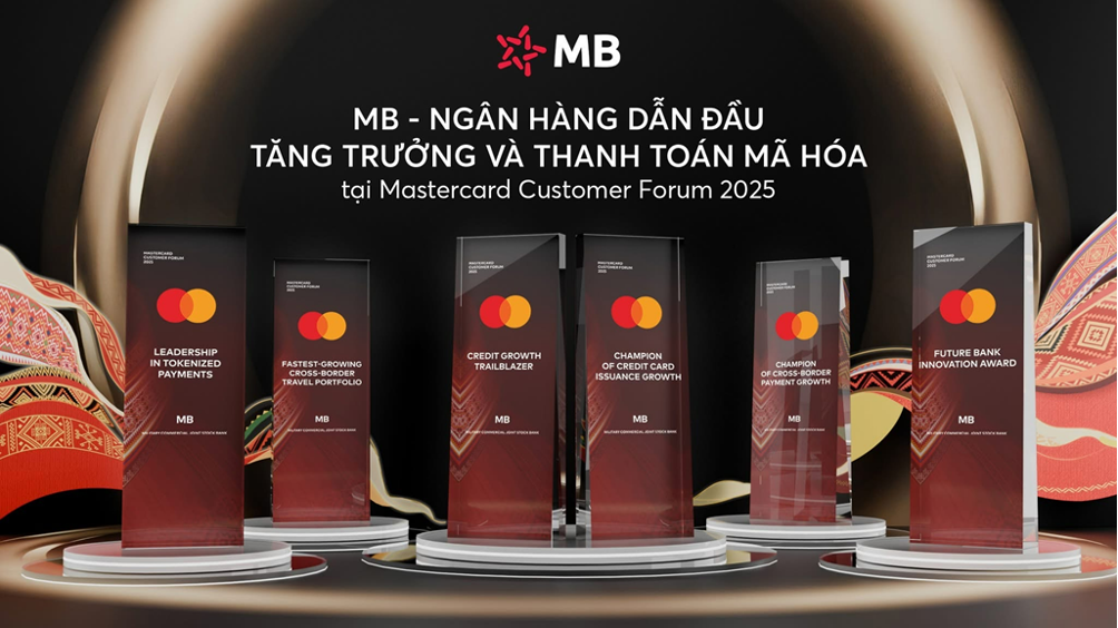 Ngày 05/12, tại Hội nghị Khách hàng Mastercard 2025 (Mastercard Customer Forum 2025), MB xuất sắc được xướng tên ở loạt hạng mục giải thưởng uy tín từ Mastercard. Đây là những thành tựu ấn tượng, minh chứng cho sự phát triển mạnh mẽ của MB trong lĩnh vực thẻ tín dụng và thanh toán không tiền mặt.