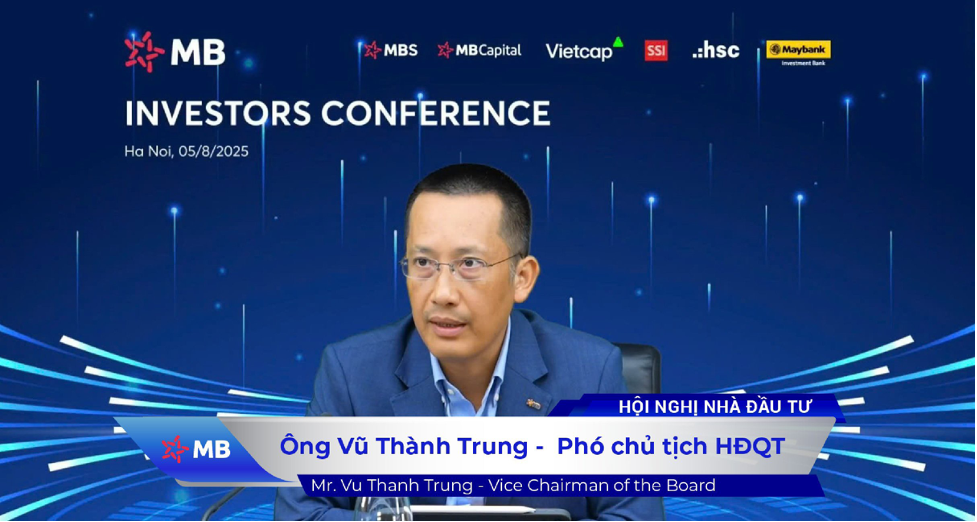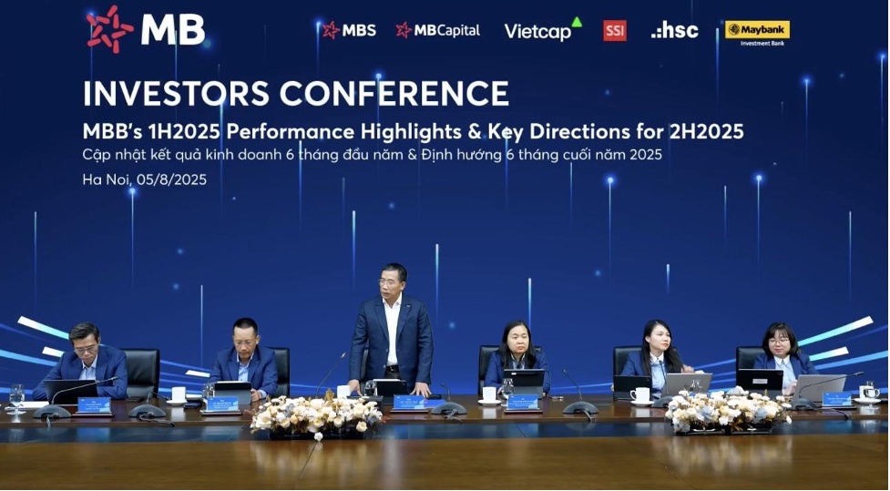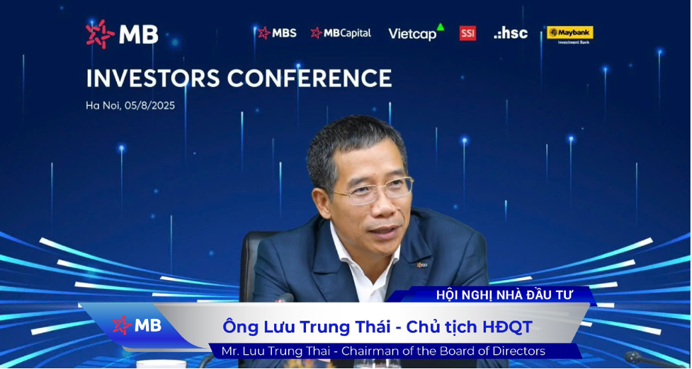 (THPL) - Ngày 05/8, Ngân hàng TMCP Quân đội (MB, HOSE: MBB) tổ chức Hội nghị Nhà đầu tư nhằm cập nhật kết quả kinh doanh 6 tháng đầu năm 2025 và định hướng 6 tháng cuối năm 2025. Ông Lưu Trung Thái – Chủ tịch HĐQT MB chủ trì hội nghị.