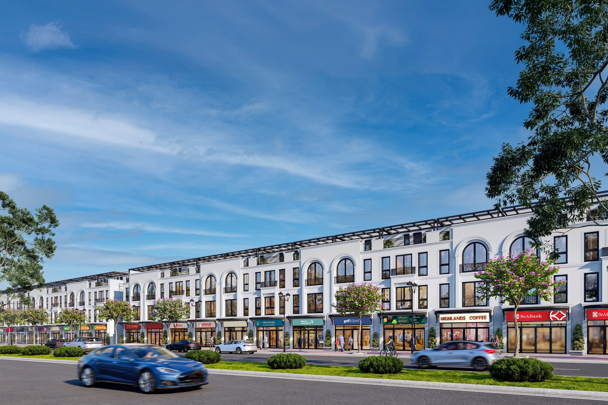 Với gần 30 căn shophouse được quy hoạch bài bản và được thiết kế theo phong cách tân cổ điển sang trọng, khu shop cao cấp sẽ là nơi hội tụ của nhiều thương hiệu lớn trong nước và quốc tế trong các lĩnh vực ngân hàng, siêu thị bán lẻ, du lịch, gôn, ẩm thực,... như Ngân hàng SeABank, Siêu thị BRGMart, Kem Thủy Tạ Gourmet, Gốm Chu Đậu, trung tâm lữ hành quốc tế, nhà hàng hải sản, quán cà phê,….