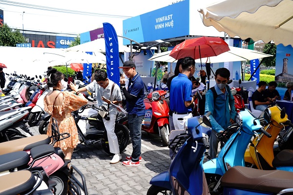 Tương tự không khí nhộn nhịp tại TTTM Aeon Mall Bình Dương Canary, tại các điểm sự kiện ở Trung tâm Hội nghị triển lãm Bình Dương (TP HCM), Quảng trường Hùng Vương (Phú Thọ), TTTM Vincom Plaza Hà Tĩnh (Hà Tĩnh), nhiều người dân đánh giá cao mô hình “thu xăng - đổi điện” khi hỗ trợ khách hàng chuyển đổi phương tiện di chuyển nhanh nhất với chi phí tối ưu nhất.