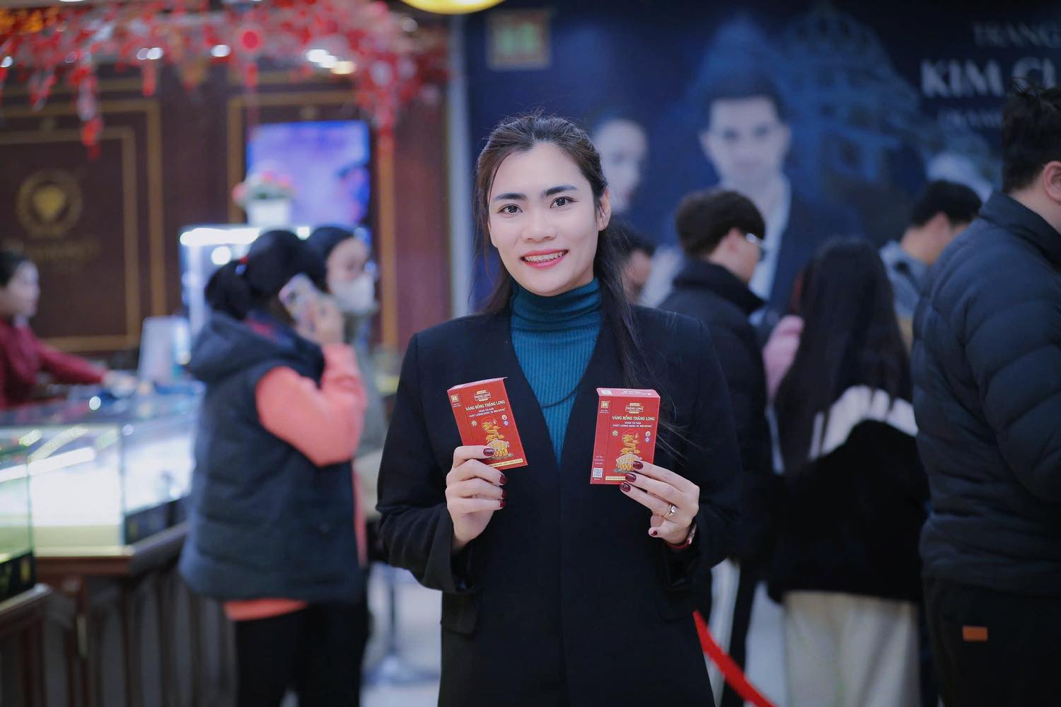 Vừa cầm trên tay 2 chỉ vàng, bạn Minh Châu (Bắc Từ Liêm, Hà Nội) vui vẻ chia sẻ: "Năm nào ngày vía Thần tài, em cũng đi mua vàng để cầu mong tài lộc sẽ đến với mình, cũng như sẽ thuận buồm xuôi gió trong công việc".