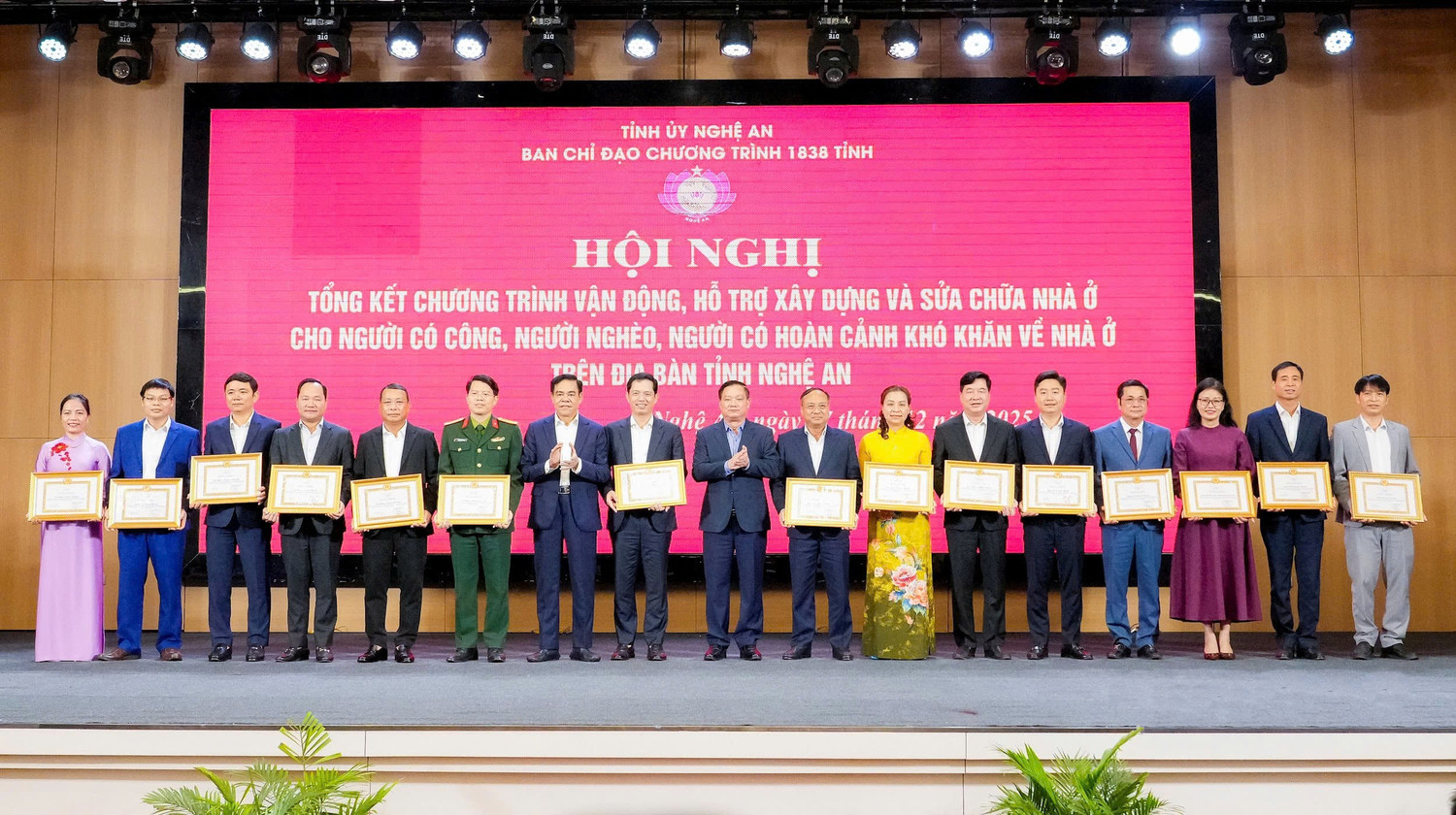 Dịp này, Ban Thường vụ Tỉnh ủy Nghệ An tặng Bằng khen cho 15 tập thể, 16 cá nhân; Chủ tịch Ủy ban Nhân dân tỉnh tặng Bằng khen cho 21 tập thể, 26 cá nhân; Ủy ban Mặt trận Tổ quốc tỉnh tặng Bằng khen cho 9 tập thể, 10 cá nhân vì đã có thành tích xuất sắc trong việc triển khai thực hiện Chương trình vận động, hỗ trợ xây dựng, sửa chữa nhà cho người có công, người nghèo, người có khó khăn về nhà ở trên địa bàn tỉnh Nghệ An giai đoạn 2023-2025.