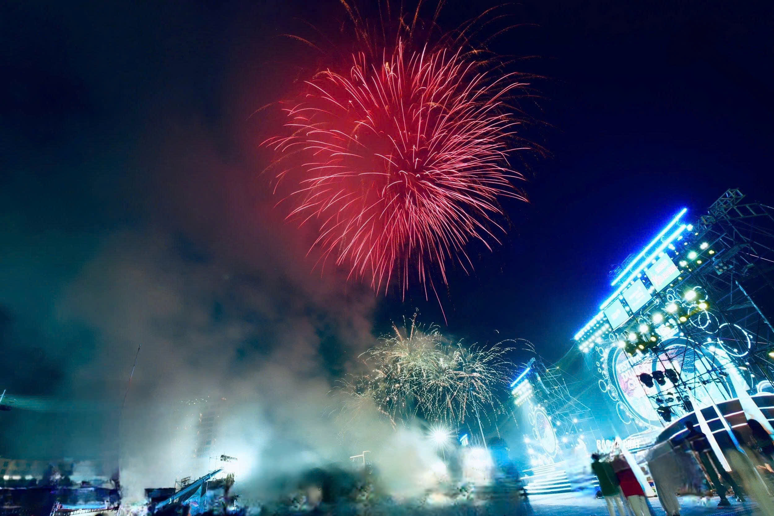Đến khoảng 19h00, khu vực Quảng trường Bình Minh chật kín người. Dòng người đổ về mỗi lúc một đông, tạo nên bức tranh sôi động hiếm thấy. Ban tổ chức đã bố trí thêm các màn hình LED cỡ lớn phía ngoài để phục vụ người dân và du khách theo dõi trọn vẹn chương trình khai mạc.