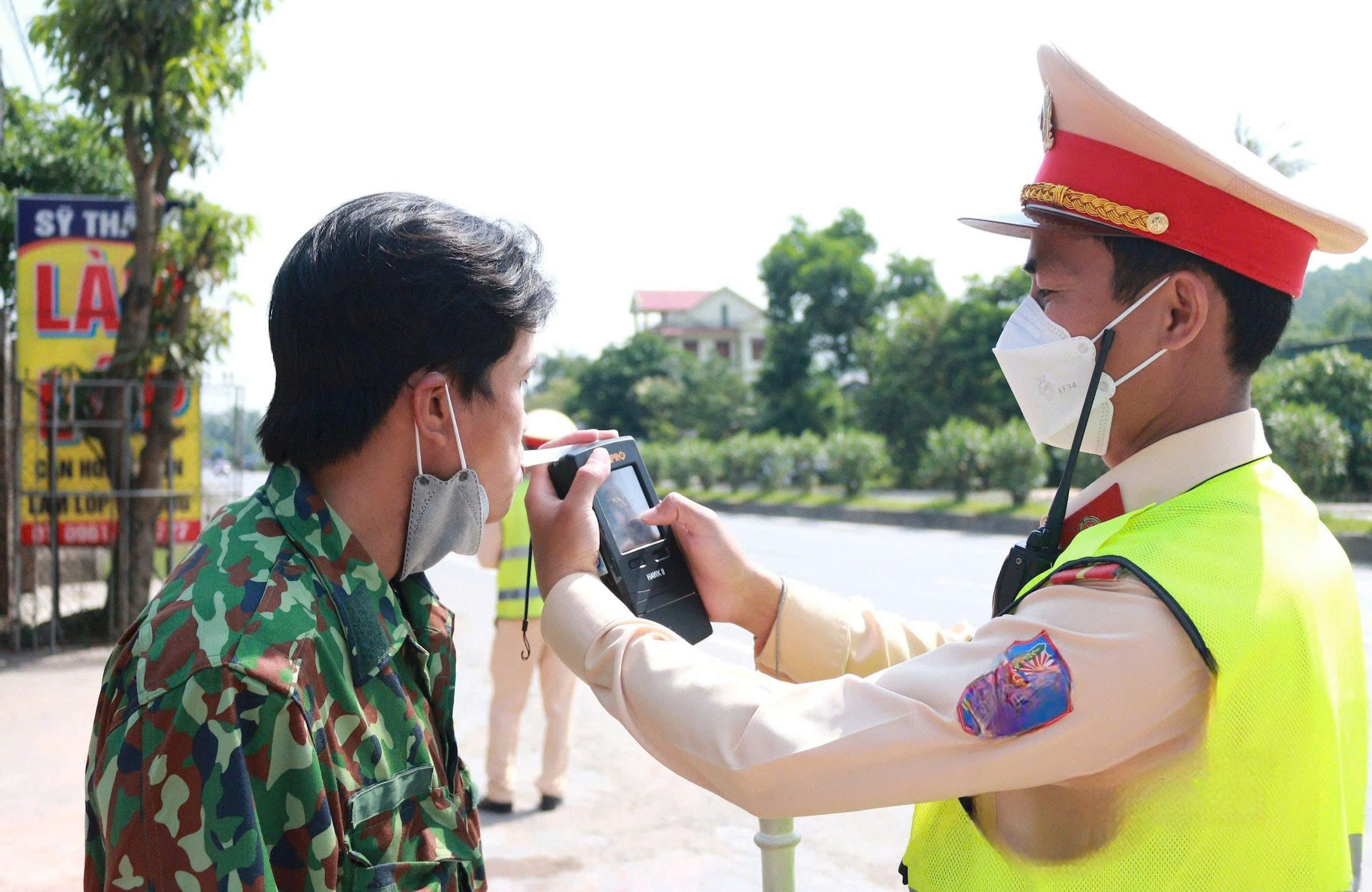 Kiểm tra nồng độ cồn đối với người điều khiển phương tiện trên tuyến Quốc lộ 1A qua địa bàn Nghệ An