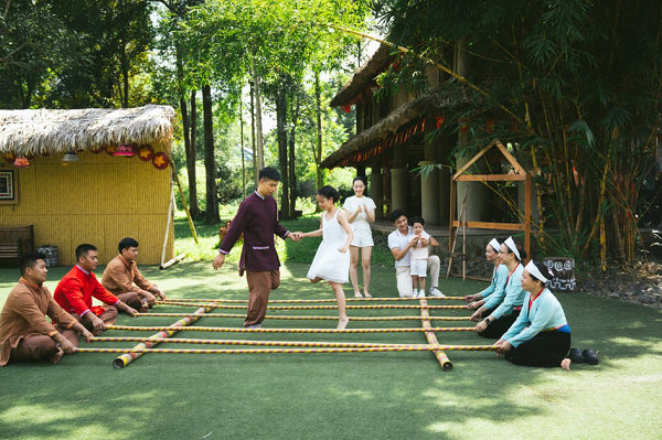 Buổi chiều có thể là khoảng thời gian cả gia đình cùng đạp xe quanh thung lũng hoặc đưa trẻ nhỏ tới Serena Farm. Trong không gian thanh bình, các em nhỏ sẽ được trải nghiệm cuộc sống nông trại, cho vật nuôi ăn, tô tượng, vẽ tranh. Cả gia đình cũng có thể dành thời gian ghé thăm bản Mơ – khu nhà sàn Mường cổ với nhiều hoạt động giao lưu như giã gạo, chơi cà kheo, chụng đu hay múa sạp. Mỗi hoạt động là một mảnh ghép văn hóa giúp các thế hệ trong gia đình hiểu hơn về miền đất Hòa Bình (nay là Phú Thọ).