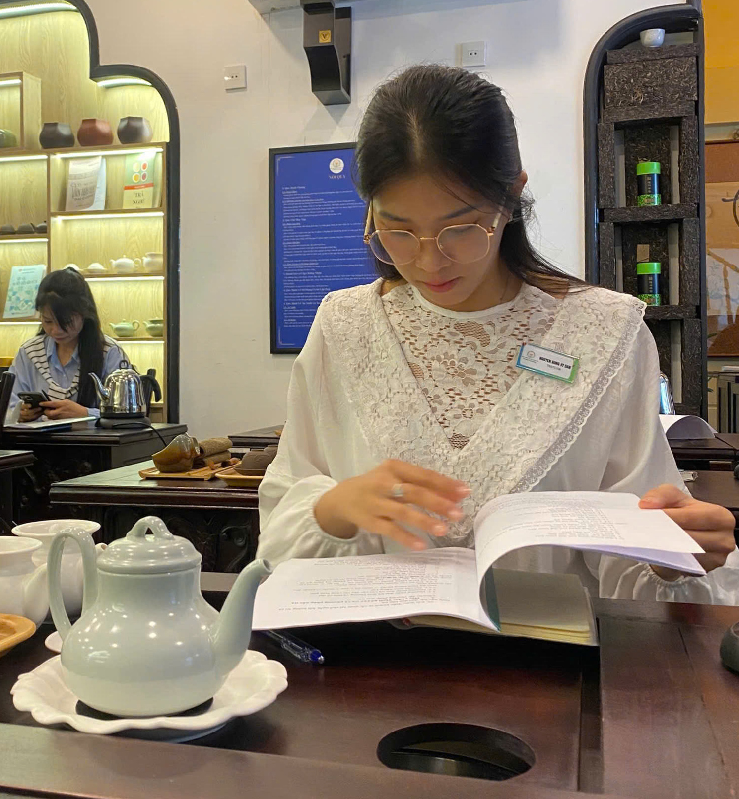 Từ sự tò mò ấy, cô bắt đầu học hỏi, tham gia các buổi trà tụ, rồi dần dần bị cuốn hút bởi vẻ đẹp tinh tế của trà Việt – thứ không chỉ là đồ uống mà còn là văn hóa, là cách sống.