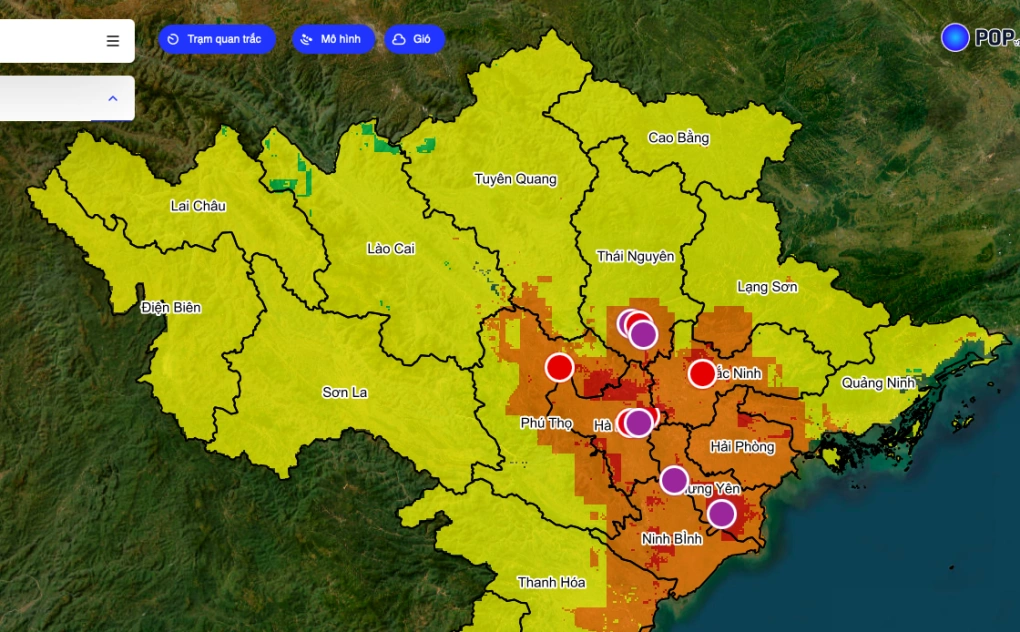 Hưng Yên tiếp tục là điểm nóng ô nhiễm khi điểm đo tại Sở Nông nghiệp và Môi trường trên đường Nguyễn Văn Linh, phường Phố Hiến thường xuyên ghi nhận ô nhiễm ở ngưỡng tím vào buổi sáng những ngày qua. Thái Nguyên cũng là địa phương thường xuyên hứng chịu ô nhiễm không khí. Sáng nay 2/3 điểm đo trên ứng dụng của Cục Môi trường lên ngưỡng tím, đáng lưu ý điểm đo tại Sân vận động Gang Thép ở cuối ngưỡng tím, gần lên mức nguy hại (mức cao nhất trong ô nhiễm không khí với khuyến cáo mọi người nên ở trong nhà). Ô nhiễm không khí tại Bắc Ninh sáng nay cũng dao động phổ biến từ cuối ngưỡng đỏ lên đầu ngưỡng tím, Phú Thọ, Hải Phòng cũng ô nhiễm ở ngưỡng đỏ.