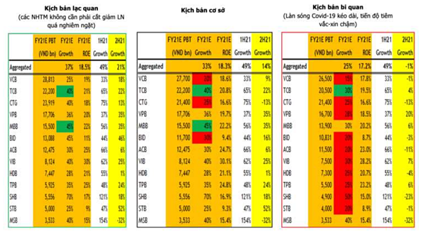 “Nếu tình hình dịch bệnh được kiểm soát tốt trong quý 3, chúng tôi tin rằng các ngân hàng này sẽ có thể giải phóng nguồn vốn và chắc chắn rằng sẽ cho thấy lợi nhuận phục hồi mạnh mẽ trong quý 4 và năm 2022”, nhóm nghiên cứu nhận định.