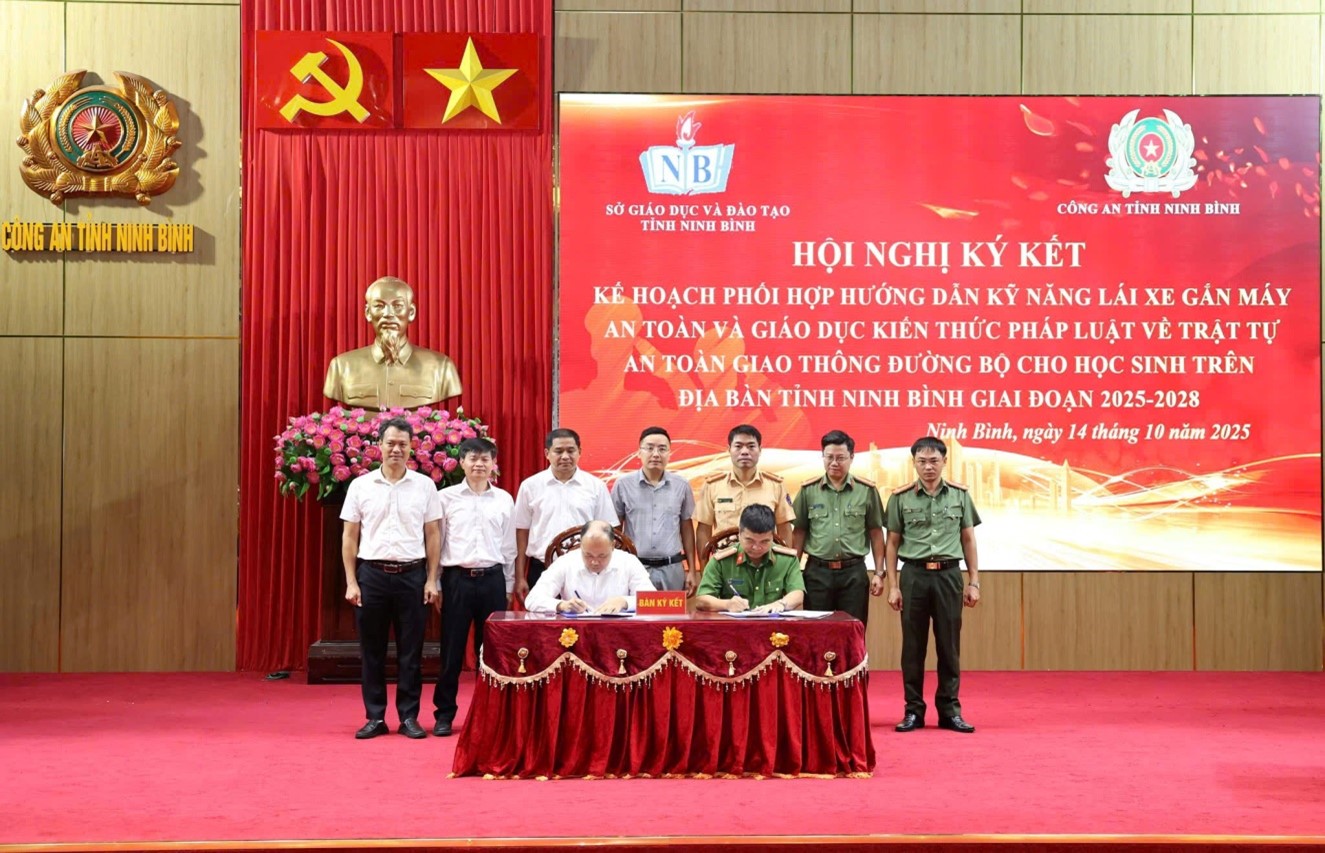 Nhằm xây dựng môi trường học đường an toàn, văn minh, Công an tỉnh Ninh Bình và Sở Giáo dục và Đào tạo đã ký kết Kế hoạch phối hợp triển khai hướng dẫn kỹ năng lái xe gắn máy an toàn và giáo dục kiến thức pháp luật về TTATGT cho học sinh giai đoạn 2025–2030. Chương trình hướng tới việc tạo chuyển biến rõ rệt về nhận thức và hành vi khi học sinh tham gia giao thông.
