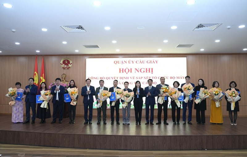 UBND quận Cầu Giấy đã công bố các quyết định về công tác sắp xếp, tổ chức bộ máy của UBND quận.