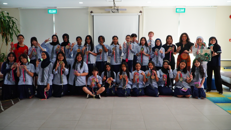 Cũng tại chương trình, các giảng viên Trường Quốc tế Brunei và 30 học sinh từ lớp 7 đến lớp 12 thuộc nhiều quốc tịch đã trải nghiệm kỹ thuật thêu tay truyền thống của Việt Nam và trang trí sản phẩm bằng các hoa văn đặc sắc của dân tộc H’Mông.