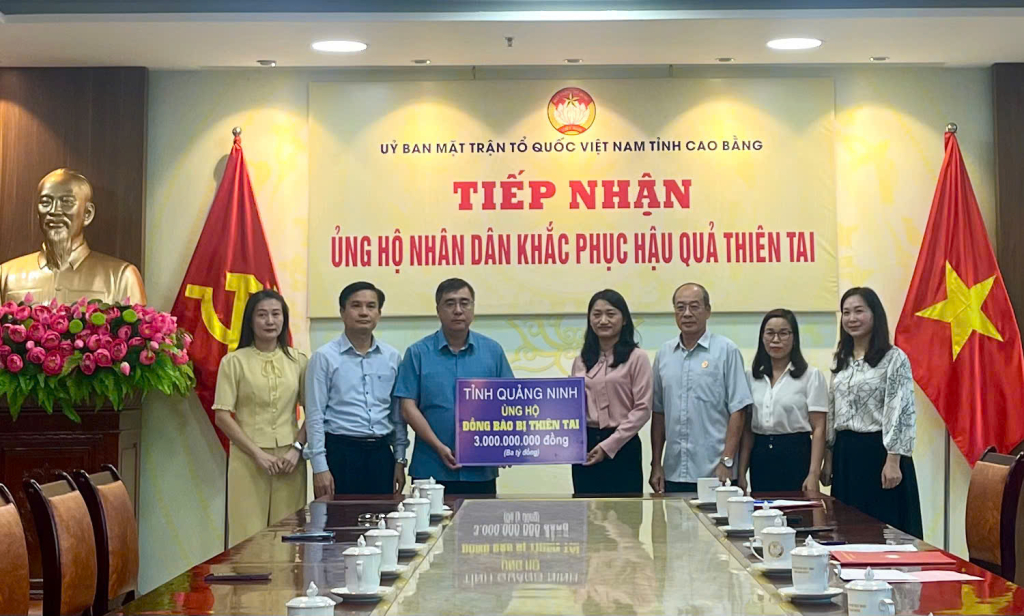 Chiều cùng ngày, đoàn công tác của Ủy ban MTTQ tỉnh Quảng Ninh tiếp tục di chuyển đến tỉnh Cao Bằng để trao 3 tỷ đồng ủng hộ nhân dân địa phương bị thiệt hại do hoàn lưu bão số 11.