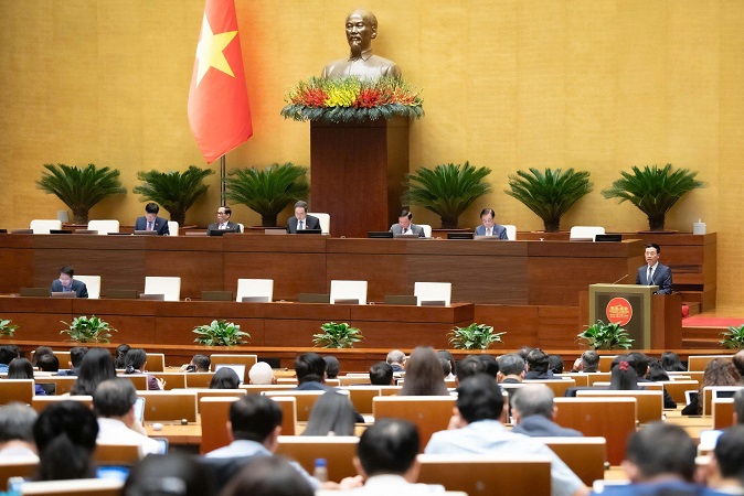 Trước khi tiến hành biểu quyết, Quốc hội nghe Bộ trưởng Bộ Khoa học và Công nghệ Nguyễn Mạnh Hùng thừa ủy quyền của Thủ tướng Chính phủ báo cáo Quốc hội về việc tiếp thu, giải trình và chỉnh lý dự thảo Luật Trí tuệ nhân tạo.