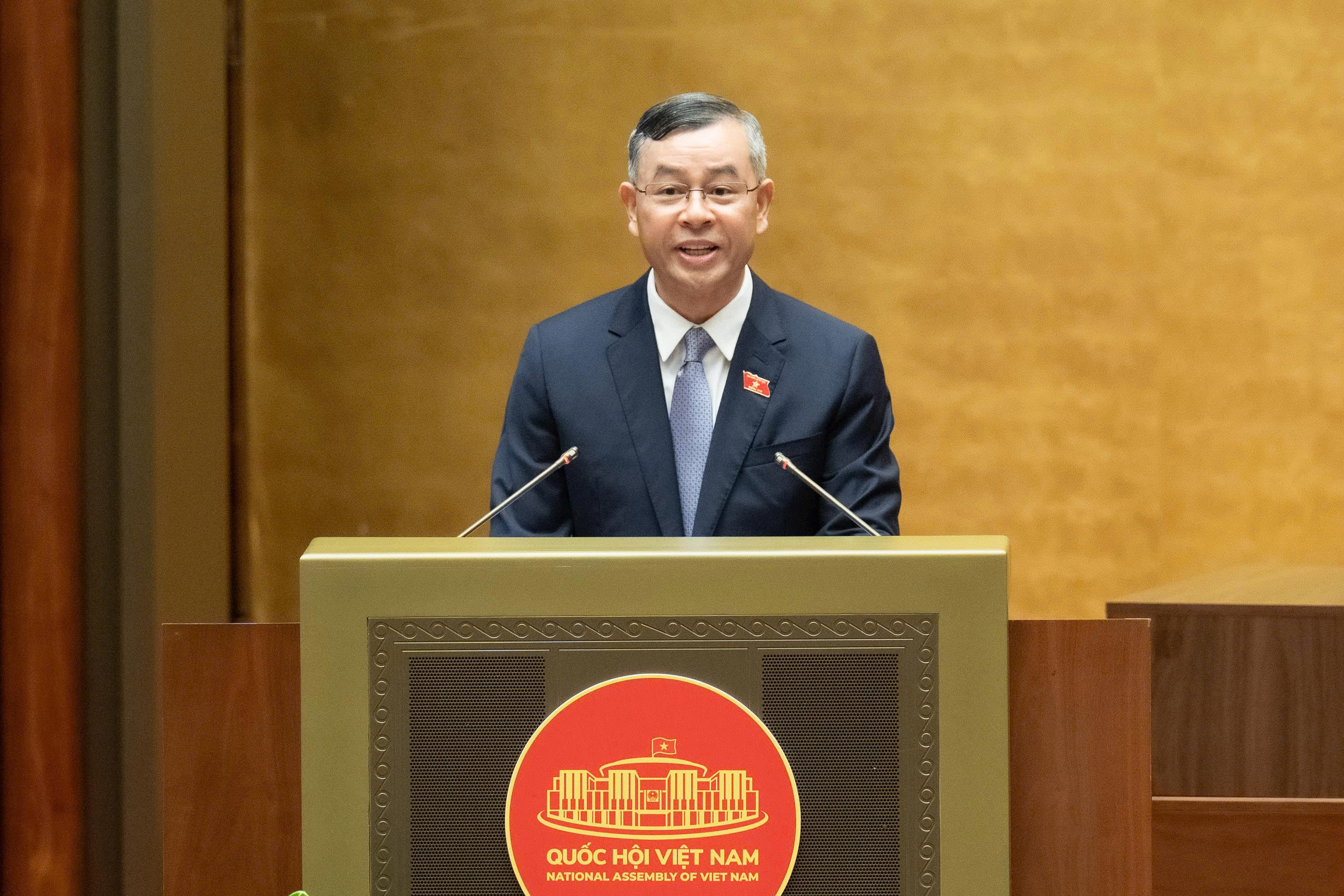 Bộ trưởng Bộ Tài chính Ngô Văn Tuấn trình bày Báo cáo tiếp thu, chỉnh lý và hoàn thiện dự thảo nghị quyết