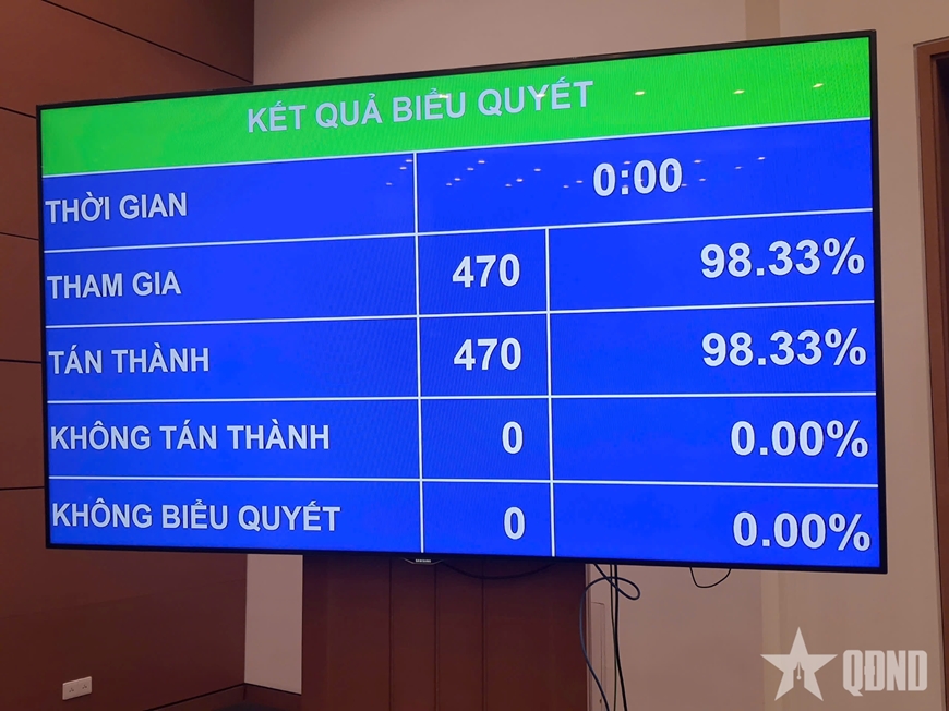 (THPL) - Sáng 16/6, dưới sự điều hành của Chủ tịch Quốc hội Trần Thanh Mẫn, Quốc hội đã biểu quyết thông qua Nghị quyết của Quốc hội sửa đổi, bổ sung một số điều của Hiến pháp năm 2013, với 470/470 đại biểu tham gia biểu quyết tán thành.