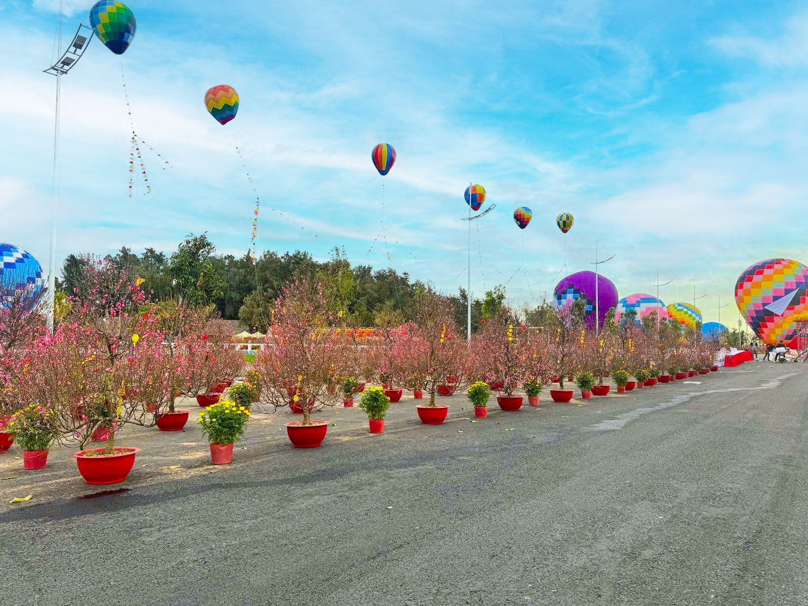 Tại khu vực Lễ hội hoa xuân, du khách sẽ được chiêm ngưỡng 300 gốc đào từ miền Bắc và 300 gốc mai từ miền Nam, tạo nên không khi tết đậm bản sắc dân tộc và tình đoàn kết. Tâm điểm của cung đường xuân là cây mai Phú Quý cổ 150 tuổi được vận chuyển trực tiếp từ An Giang, đây là mẫu mai vàng cổ lớn nhất khu vực miền Tây tính đến thời điểm hiện tại.