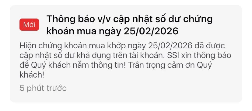 Sự cố này ảnh hưởng trực tiếp đến: cổ phiếu, chứng chỉ quỹ và chứng quyền có bảo đảm mua ngày 25/2/2026 (chu kỳ T+2). Trái phiếu Chính phủ và trái phiếu doanh nghiệp niêm yết mua ngày 26/2/2026 (chu kỳ T+1).