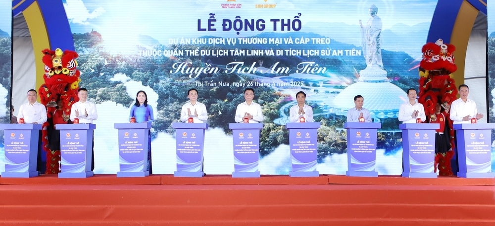 (TH&PL) - Vào sáng 26/4, tỉnh Thanh Hóa phối hợp với Tập đoàn Sun Group tổ chức lễ động thổ Dự án Khu dịch vụ thương mại và cáp treo thuộc Quần thể khu du lịch tâm linh và di tích lịch sử Am Tiên, huyện Triệu Sơn.