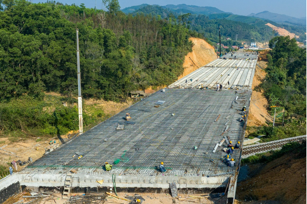 Trên phạm vi 59,2 km chiều dài tuyến, không khí thi công những ngày này tiếp tục diễn ra khẩn trương, nhịp độ làm việc được đẩy lên mức cao nhất.