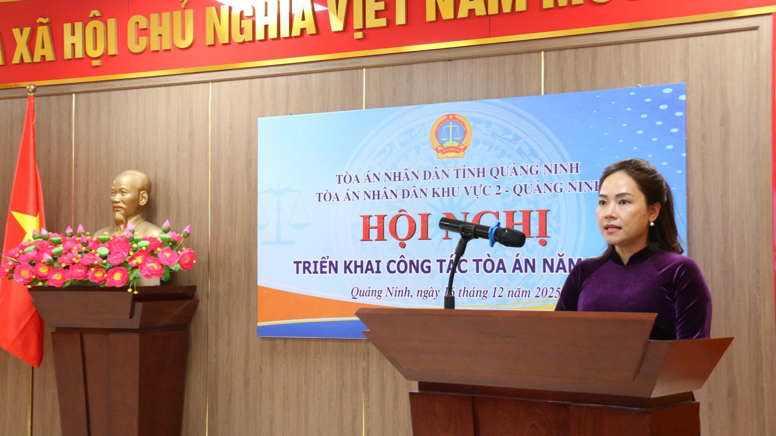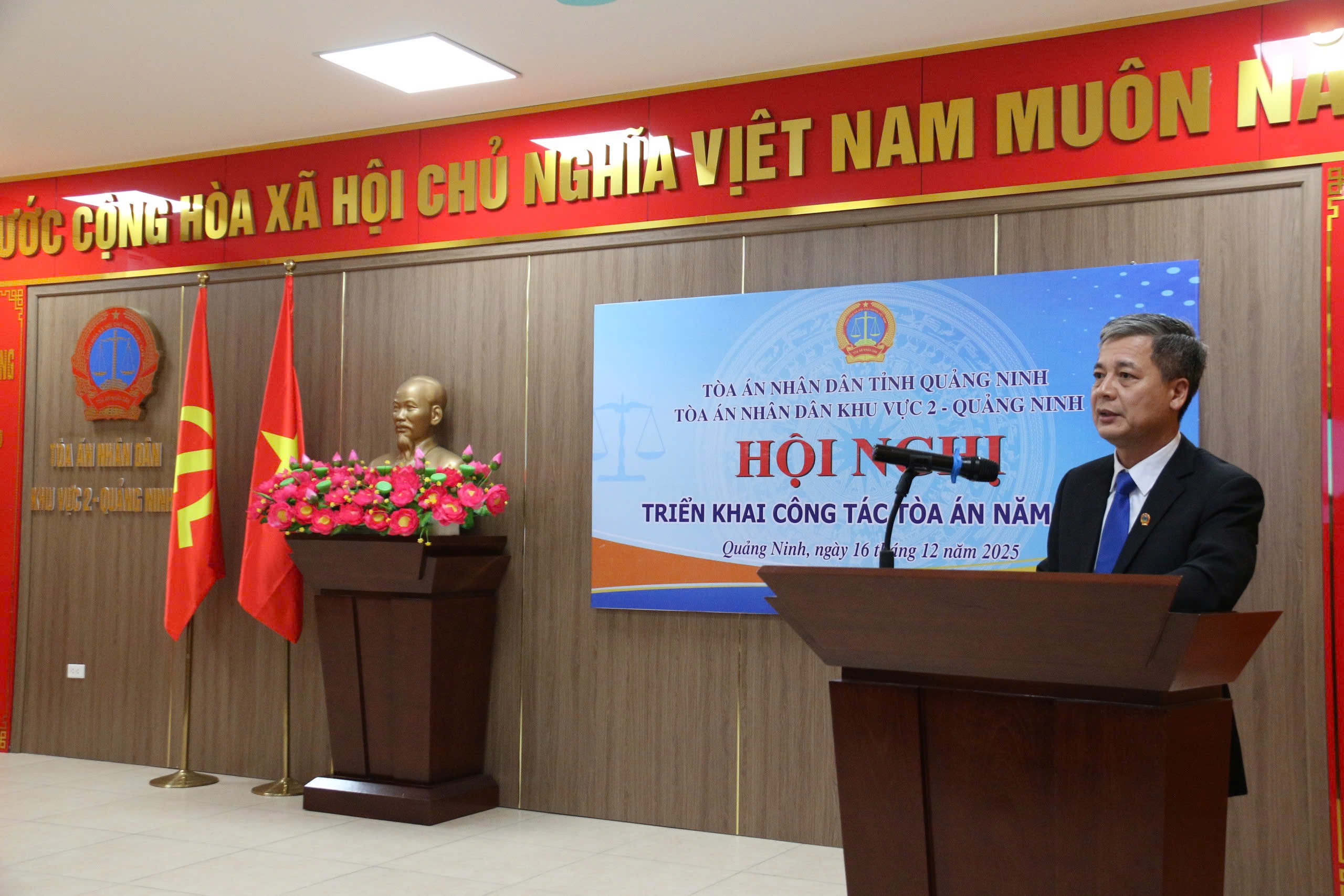 (THPL) - Chiều ngày 16/12, TAND khu vực 2 - Quảng Ninh đã tổ chức Hội nghị triển khai công tác Tòa án năm 2026, với sự tham dự của đồng chí Đinh Hải Toản, Phó Chánh án TAND tỉnh Quảng Ninh.
