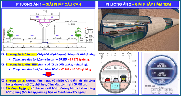 Trong chương trình làm việc, nhóm chuyên gia cấp cao của Viện nghiên cứu thiết kế hầm và công trình dưới lòng đất Trung Quốc, đã đưa ra các dạng mặt cắt hầm TBM cụ thể với các đường kính khác nhau để đáp ứng lưu thông phương tiện ô tô và kết hợp với hệ thống đường sắt nội đô; khi cần có thể sử dụng để thoát nước, chống ngập đô thị.