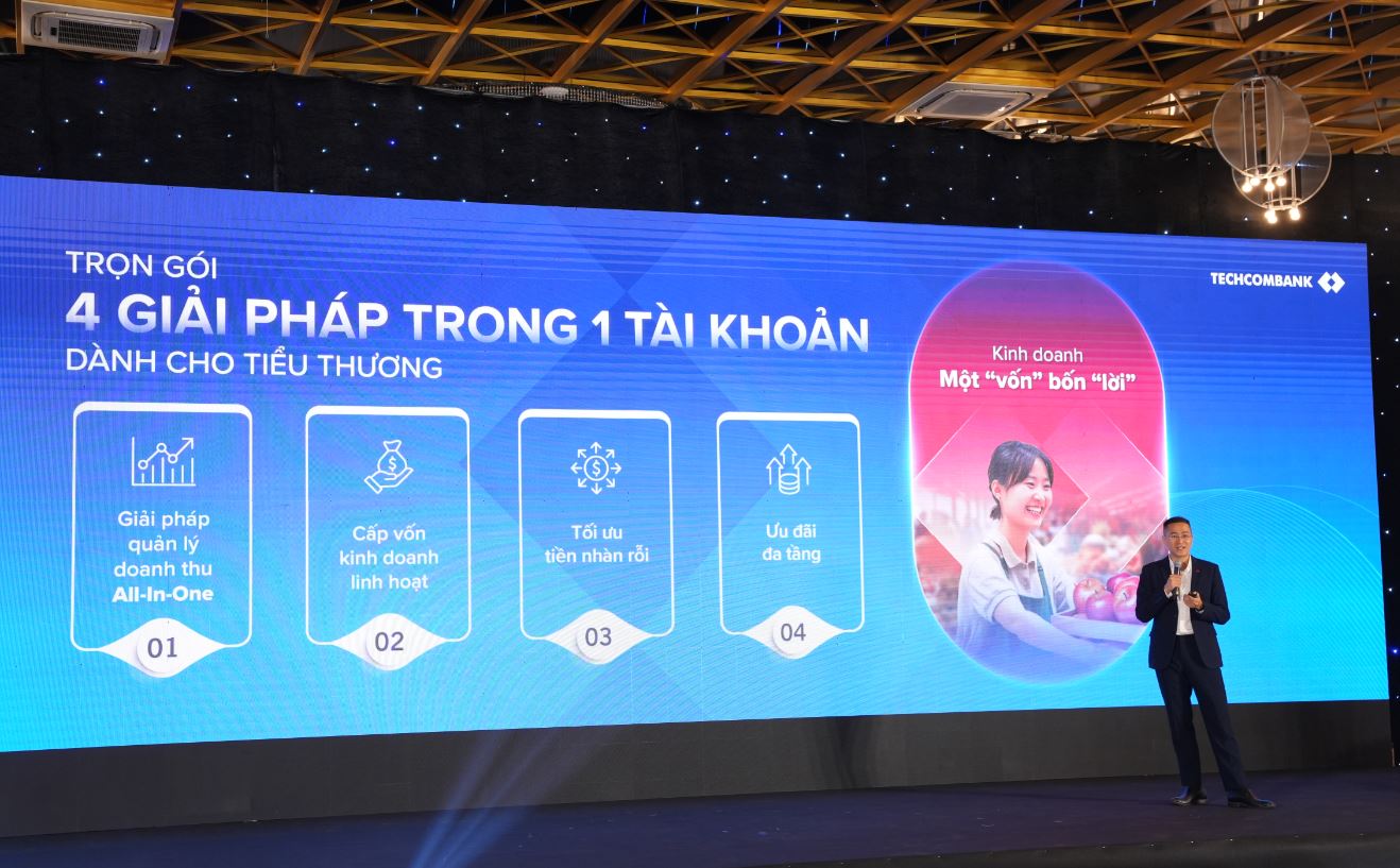 Đối với các HKD, Techcombank mang đến gói 4 giải pháp số hóa tích hợp trong một tài khoản duy nhất, giúp quản lý doanh thu dễ dàng, tiếp cận vốn linh hoạt, tối ưu tiền nhàn rỗi và hưởng ưu đãi đa tầng. Đặc biệt, các giải pháp ứng vốn trực tuyến nhanh chóng trong vài phút hỗ trợ HKD mở rộng quy mô, tăng doanh thu một cách dễ dàng và hiệu quả.