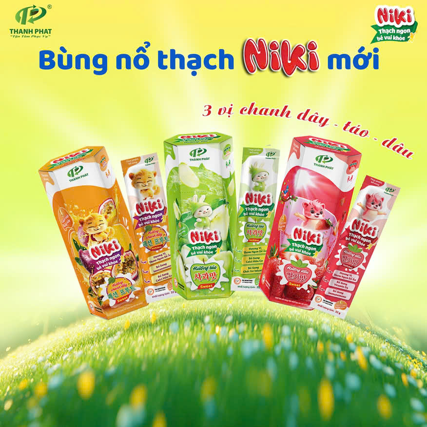Thạch Túi Niki – Thạch Ngon Bé Vui Khỏe, sản phẩm của Công ty TNHH Phát triển Xuất nhập khẩu Thành Phát, mang đến trải nghiệm vị giác tươi mới, kết hợp cùng các dưỡng chất thiết yếu như Vitamin D3, chất xơ Inulin và Immunemono, giúp hỗ trợ hệ tiêu hóa và nâng cao sức khỏe cho cả trẻ nhỏ lẫn người lớn. Với thiết kế tiện lợi, hương vị trái cây tự nhiên và kết cấu thạch giòn ngon, Thạch Túi Niki không chỉ là món ăn vặt yêu thích mà còn là người bạn đồng hành của mỗi gia đình.